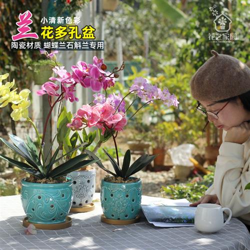 陶瓷花盆透气多孔镂空家居洋兰梦香兰石斛兰蝴蝶兰专用花盆包邮