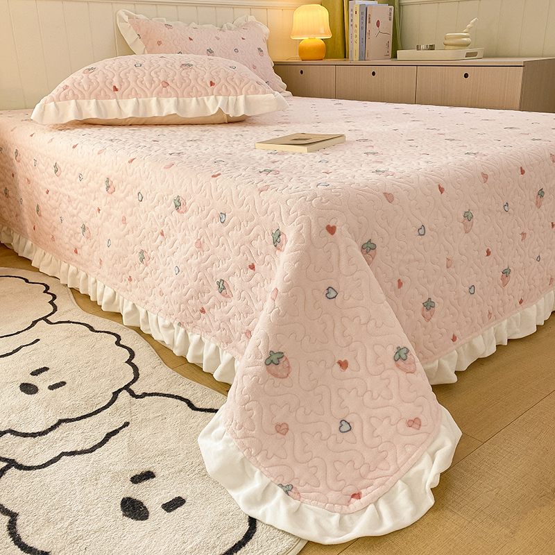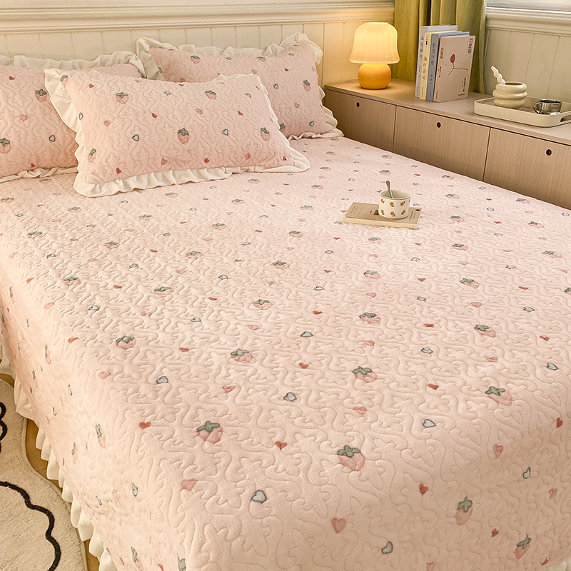冬季水晶牛奶绒床盖2025年新款加厚珊瑚绒法兰绒榻榻米床单三件套