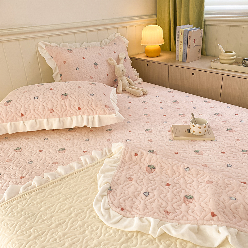 冬季水晶牛奶绒床盖2025年新款加厚珊瑚绒法兰绒榻榻米床单三件套,河南 郑州