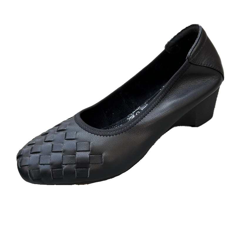 外贸真皮女鞋牛皮浅口单鞋2023新款真皮软皮透气百搭粗跟妈妈鞋,广东 广州