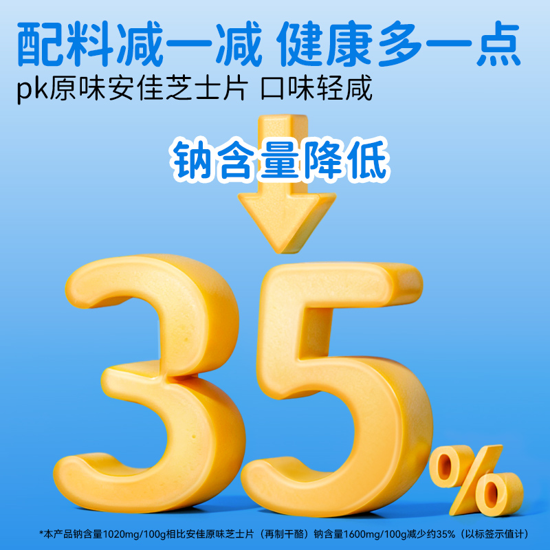 安佳减钠芝士片10片即食儿童奶酪棒原材料三明治专用汉堡烘焙家用