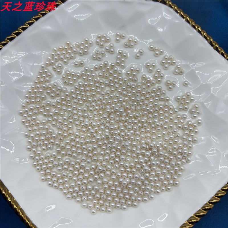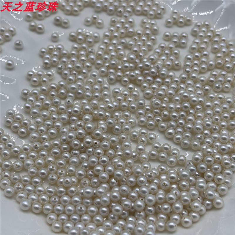 天然淡水近圆baby小米真珍珠diy手项链散装裸珠散珠材料有带孔,浙江 绍兴