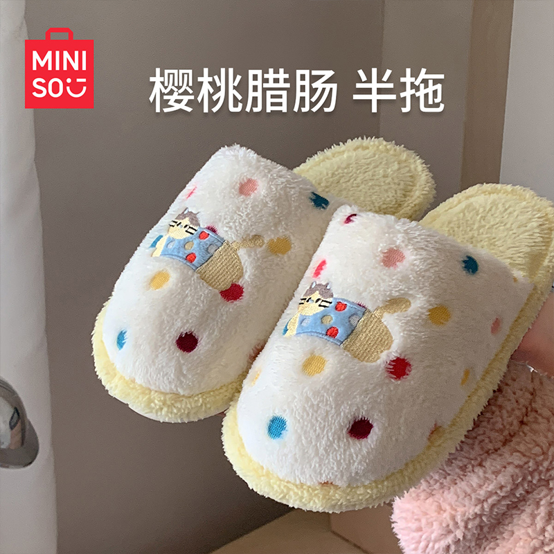 名创优品毛毛保暖包头棉拖鞋女居家防滑可爱卡通休闲秋冬季棉鞋男,上海