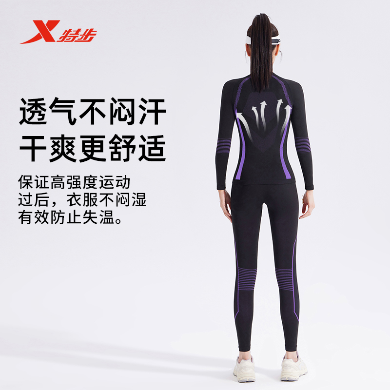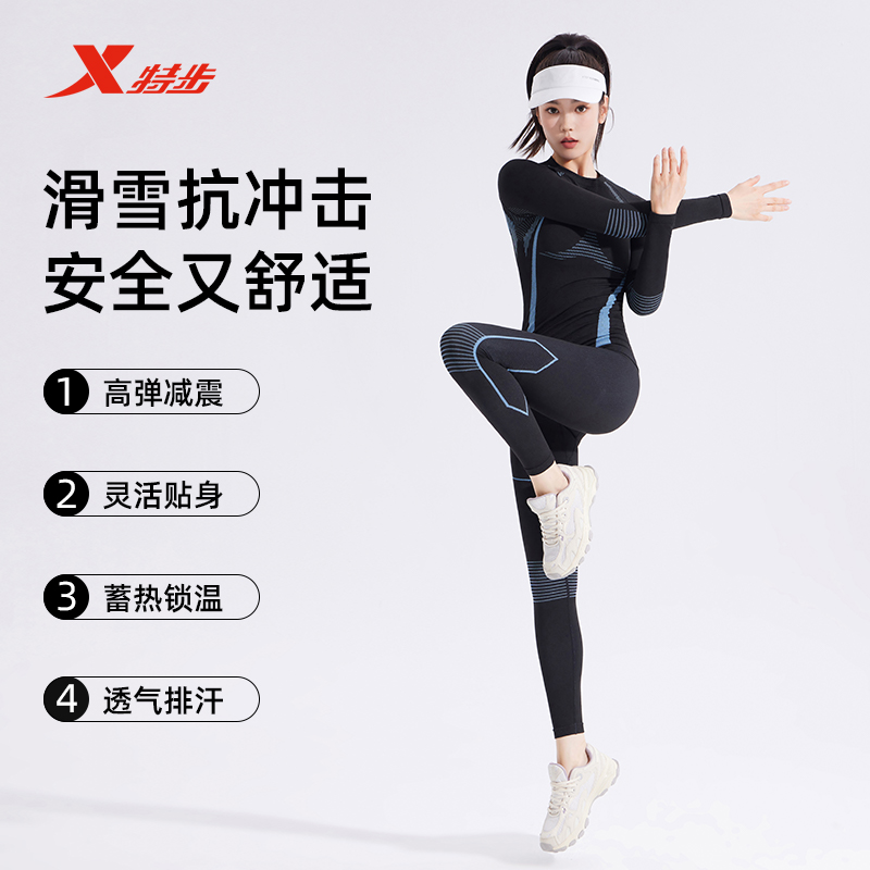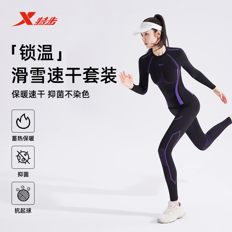 特步滑雪速干衣秋冬户外运动保暖内衣压缩跑步紧身衣男女同款套装,浙江 金华