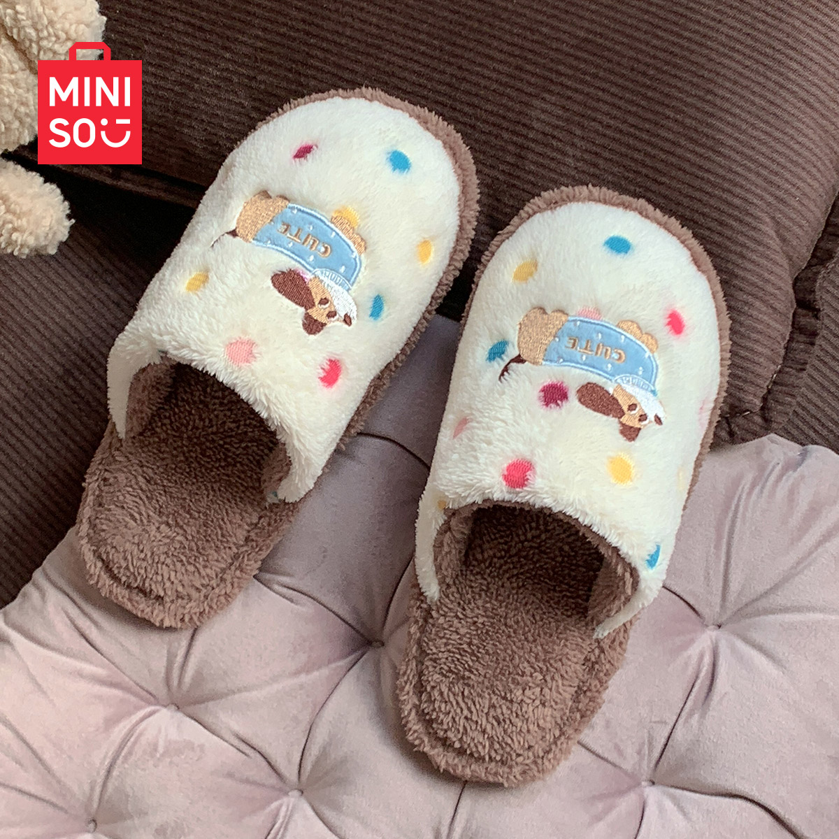 名创优品毛绒棉拖鞋女秋冬季居家室内防滑可爱棉鞋男,浙江 绍兴