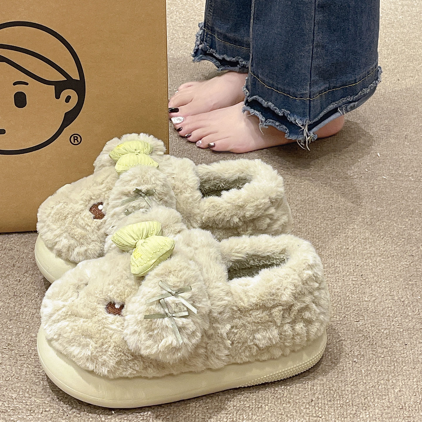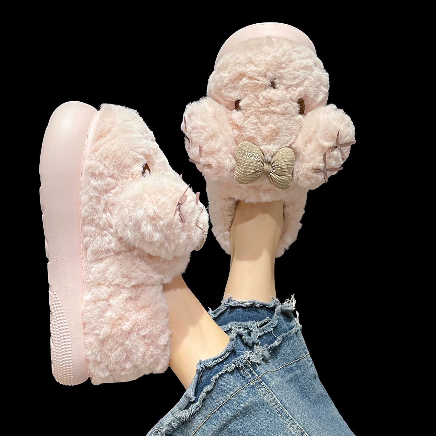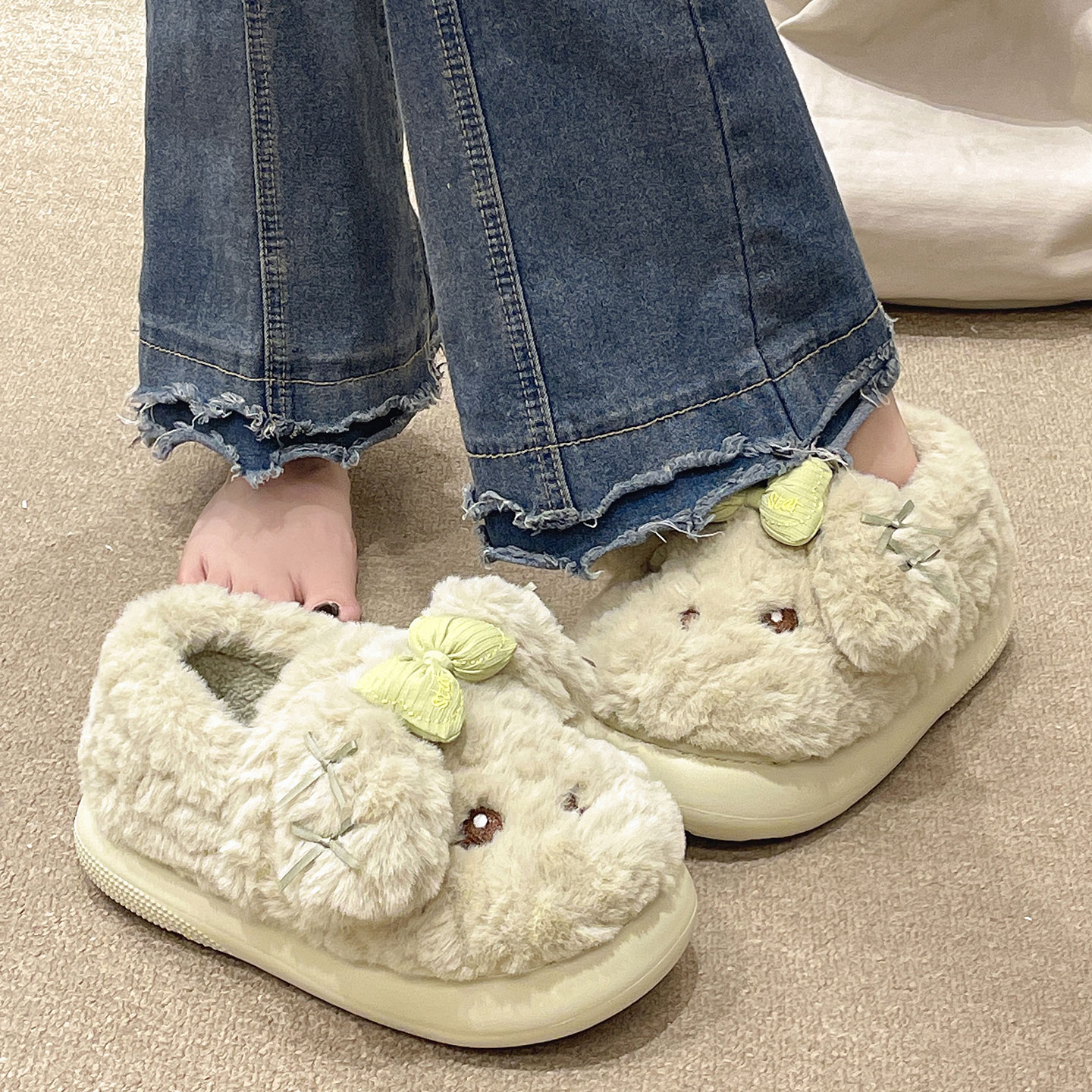 居家棉鞋女冬季软底月子鞋包跟毛绒保暖防滑可爱蝴蝶结狗狗棉拖鞋,浙江 宁波