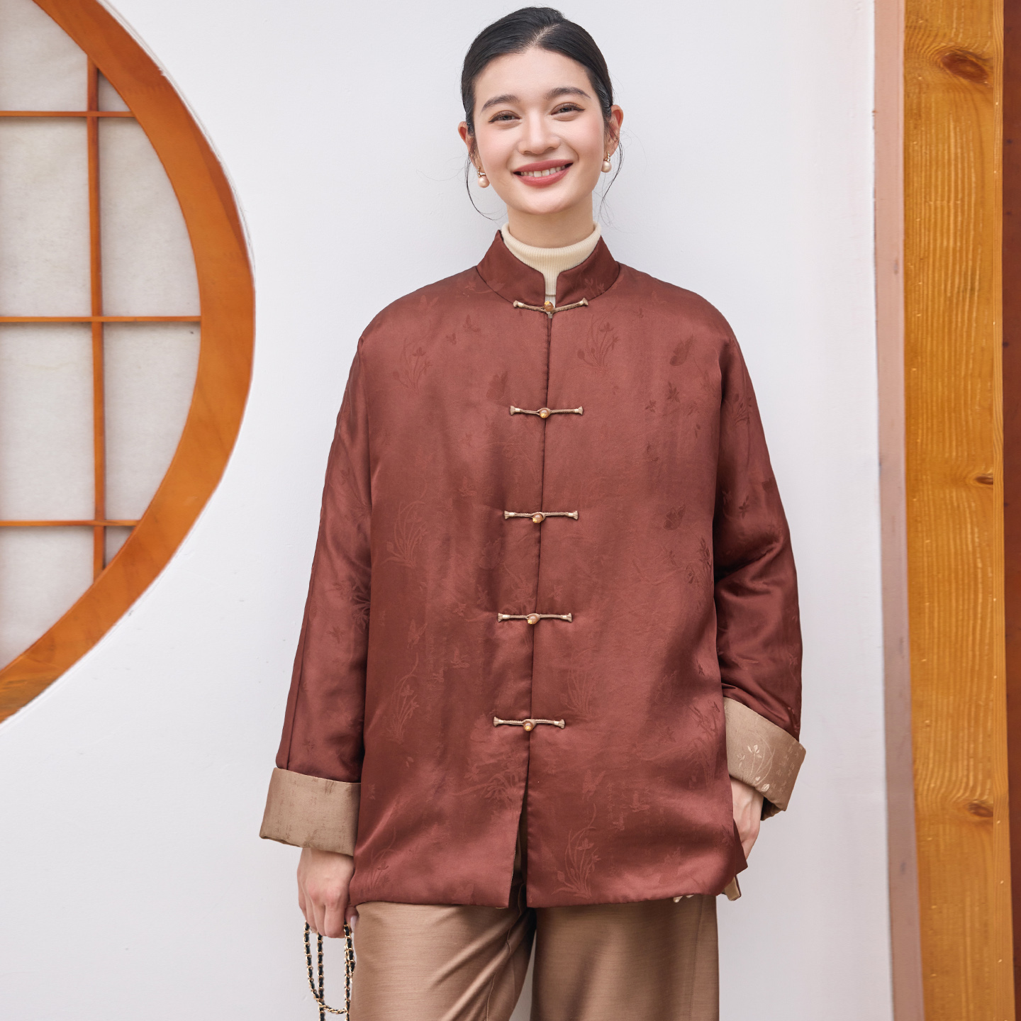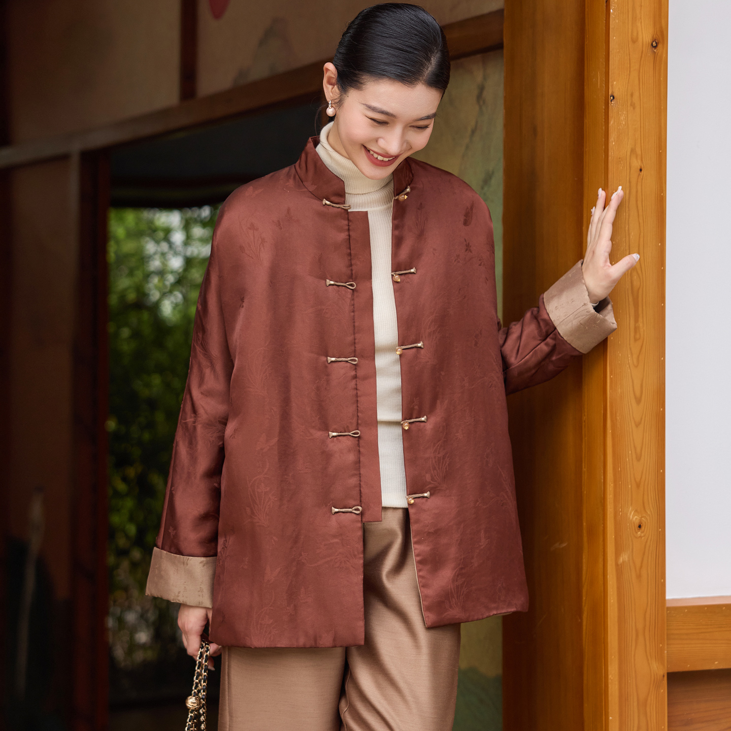 菲伊唐真丝提花红云纱冬棉衣女上衣中式复古改良唐装女夹棉服外套,北京