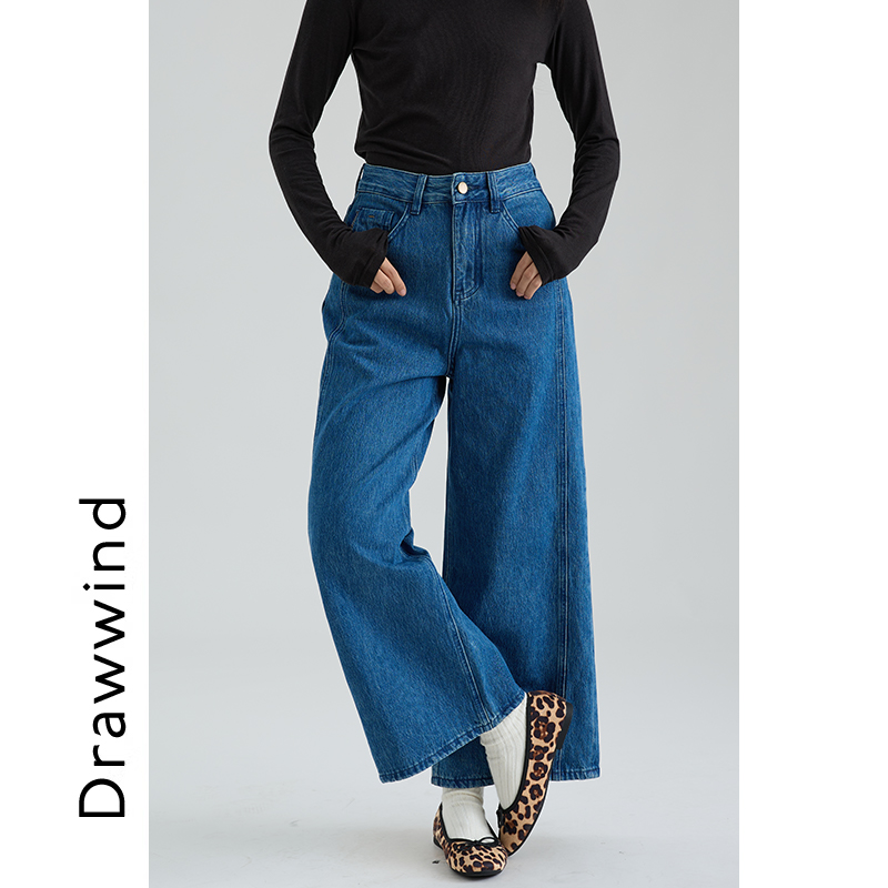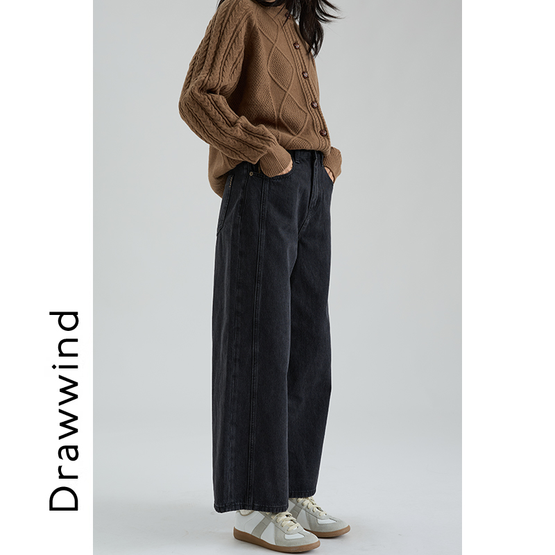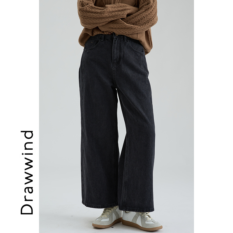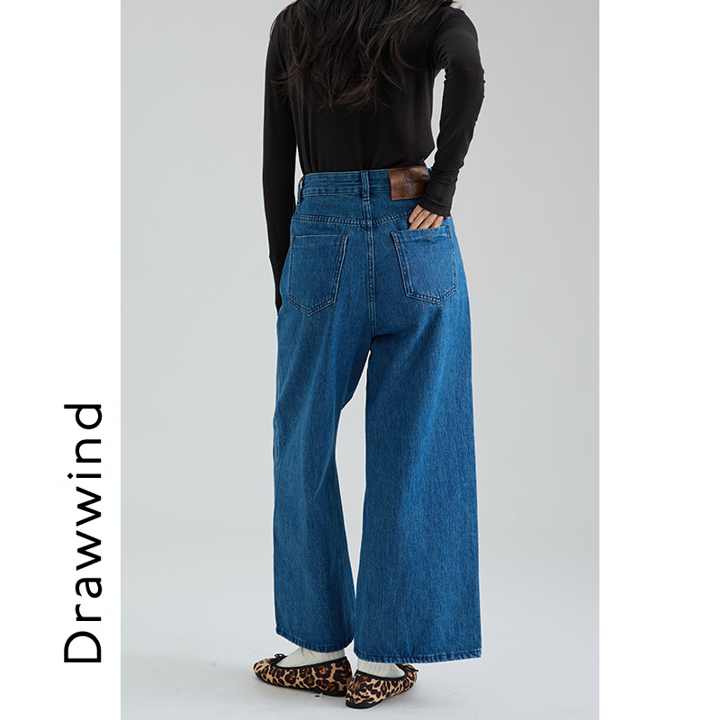 画风drawwind秋冬新款九分阔腿牛仔裤女高腰显瘦宽松直筒休闲裤子