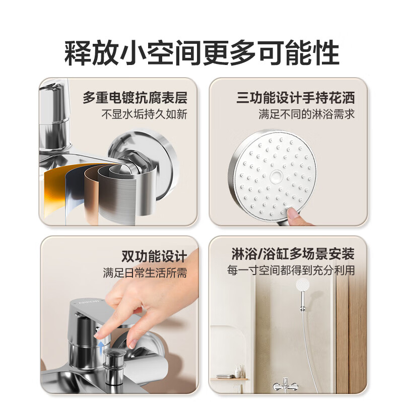 箭牌双功能淋浴花洒套装简易精铜淋浴器喷头沐浴冷热花洒带下出水,上海
