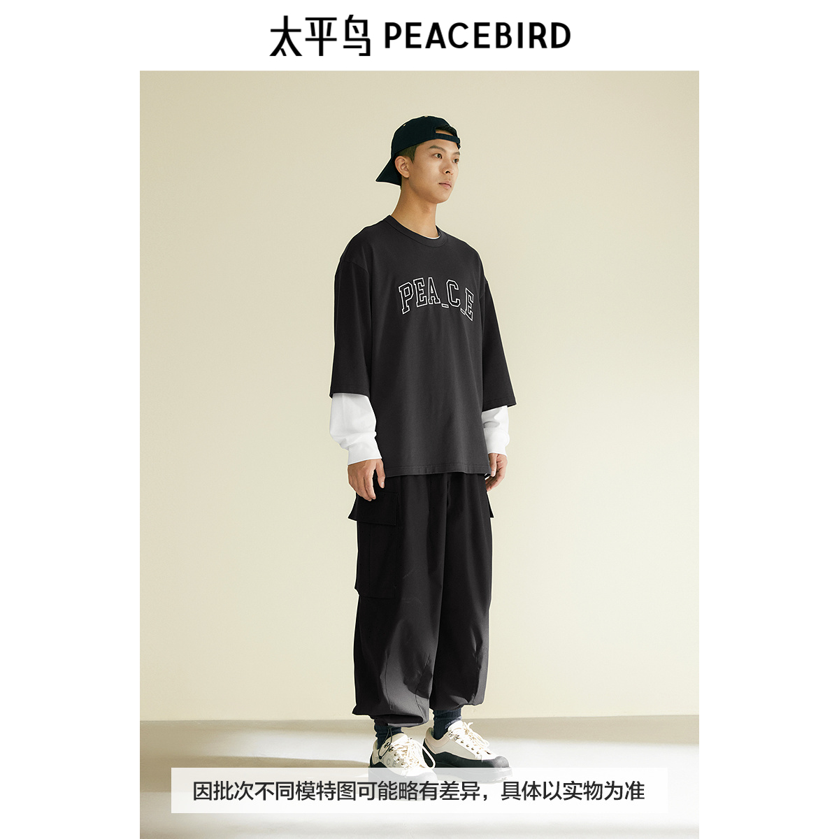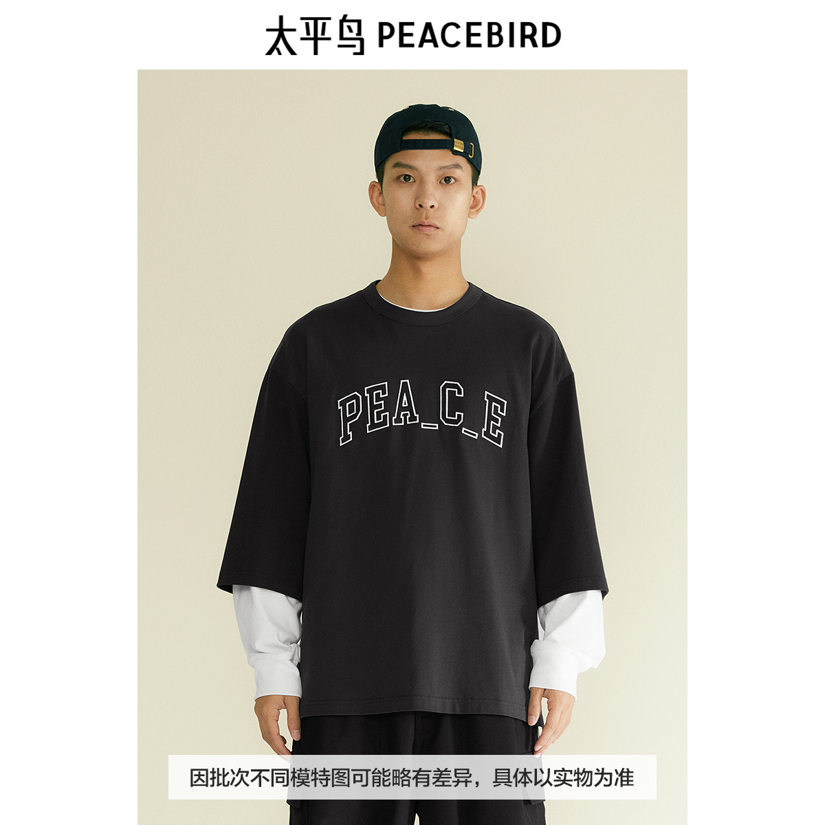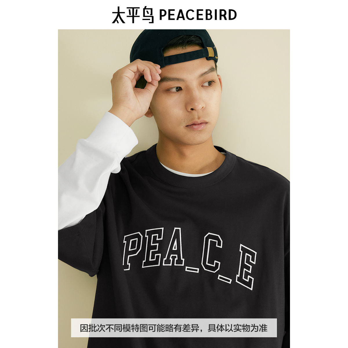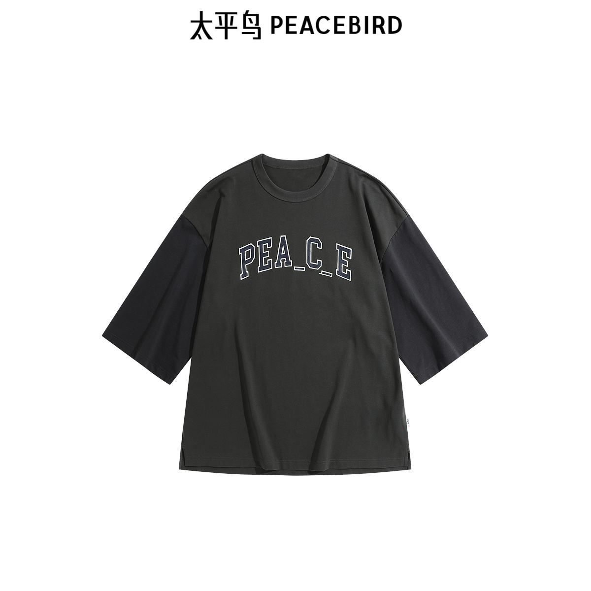 太平鸟男装 重磅字母刺绣短袖T恤秋季美式复古宽松体恤衫,浙江 宁波