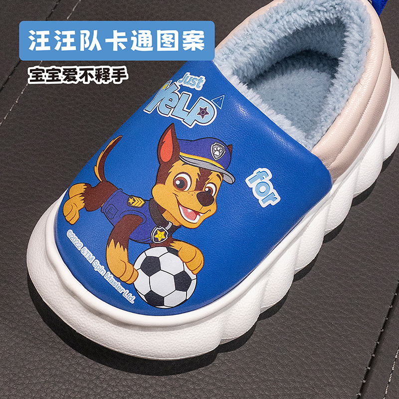 汪汪队儿童棉拖鞋pu保暖宝宝室内棉鞋包跟男童女童居家防滑防水