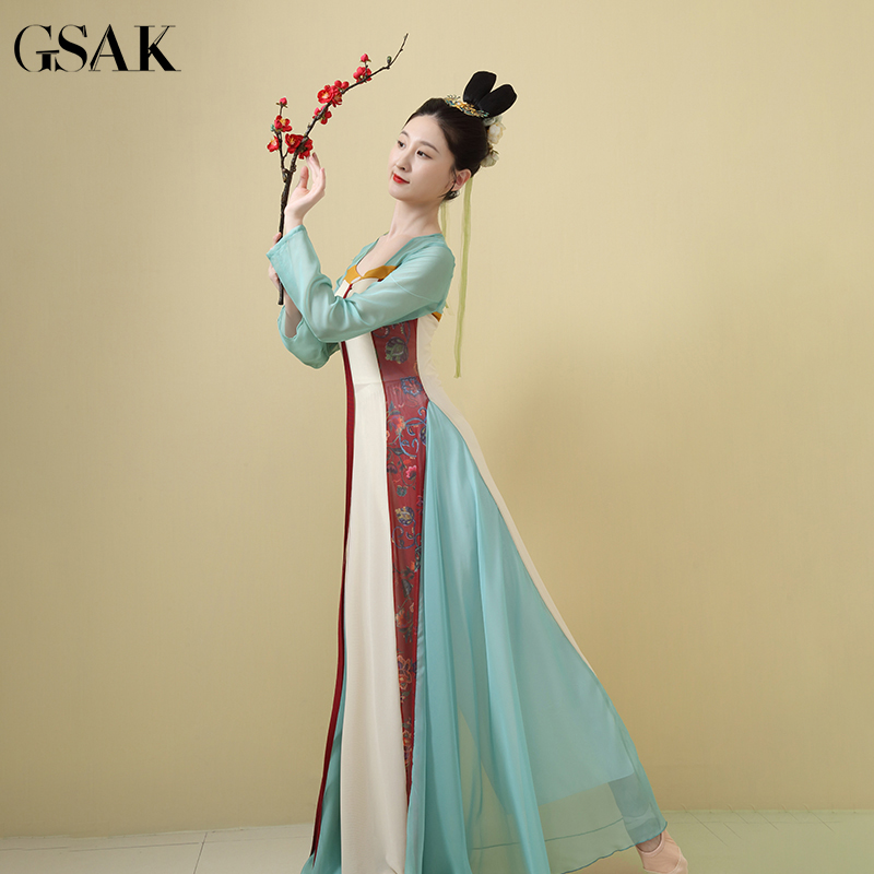 新中式唐制改良汉服日常撞色拼接齐胸汉元素连衣裙仙气原创春夏女