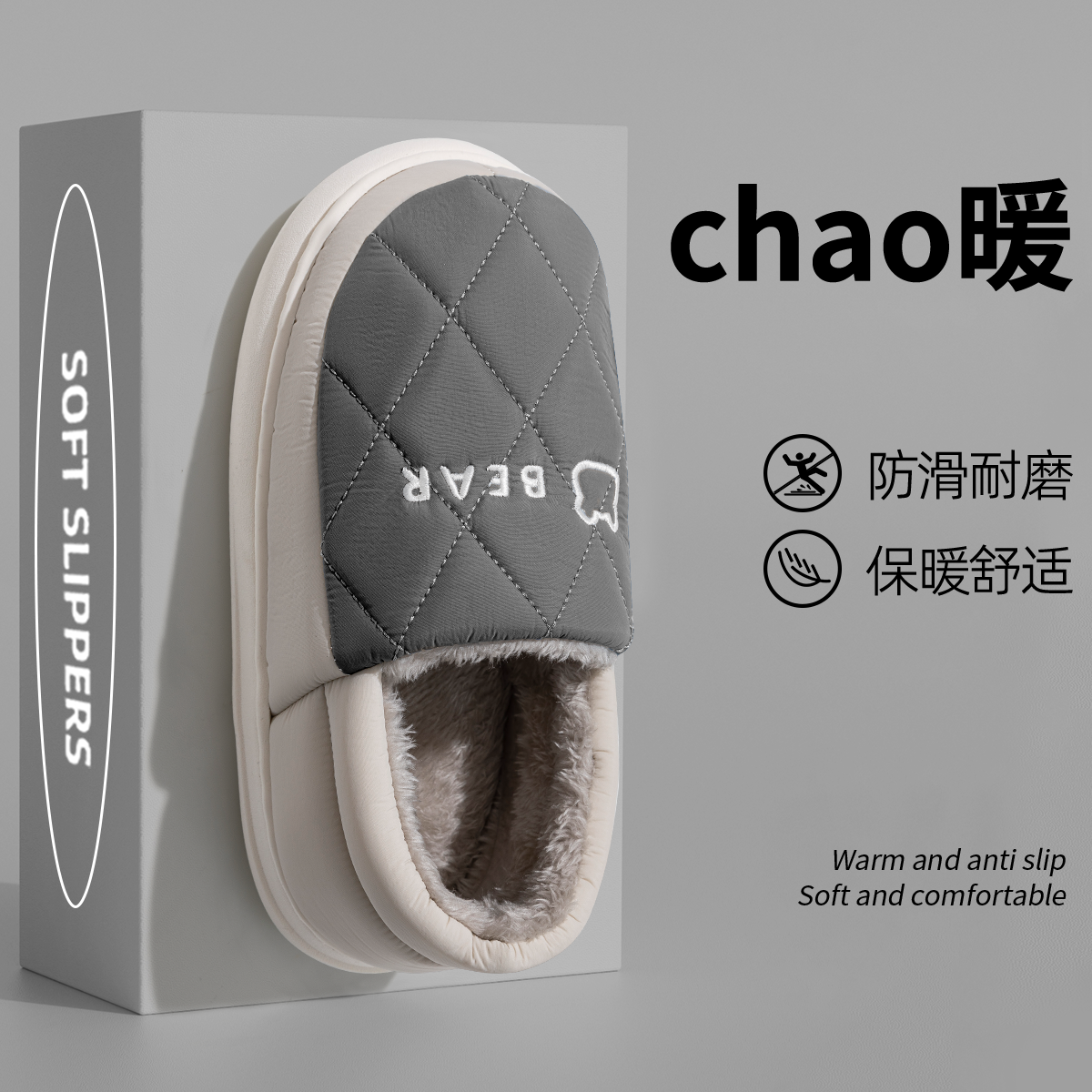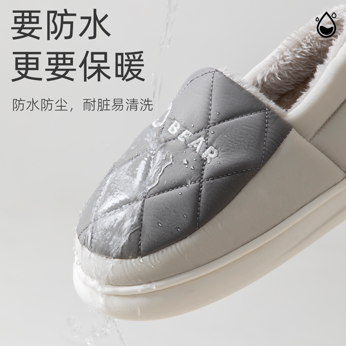 防水棉拖鞋男士冬季保暖2025新款室内居家居加绒包跟毛棉鞋女外穿,浙江 绍兴