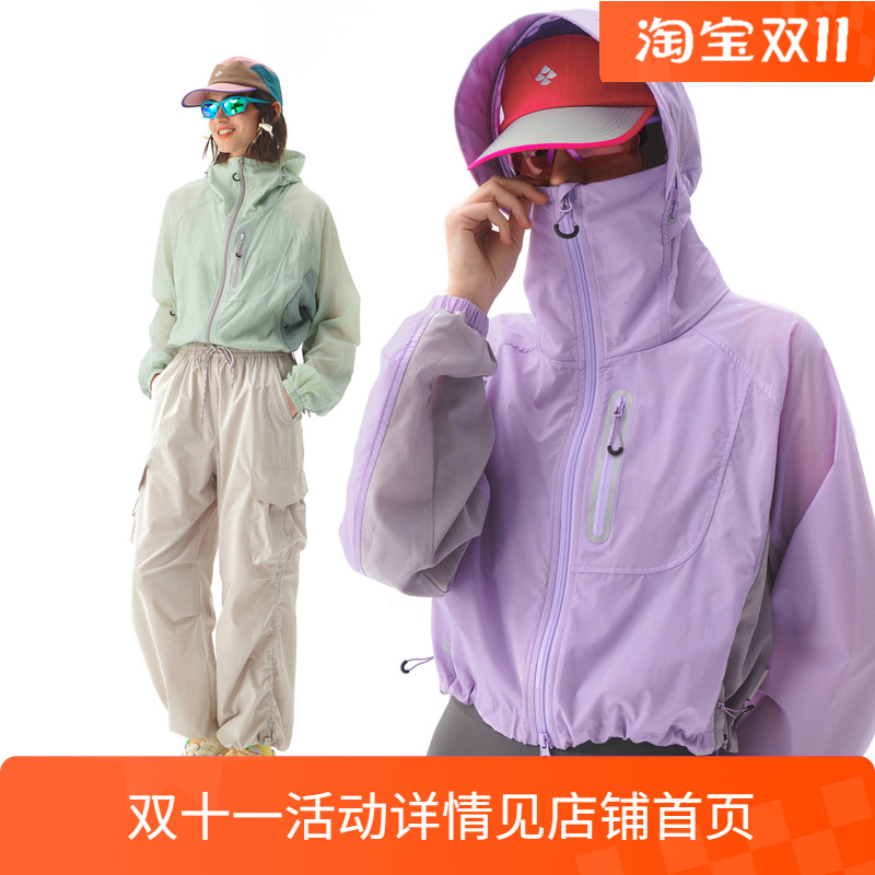 NOTHOMME户外"山影S"UPF100+撞色皮肤衣连帽短款夹克防晒衣女,广东 广州