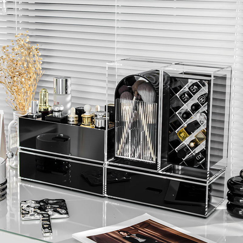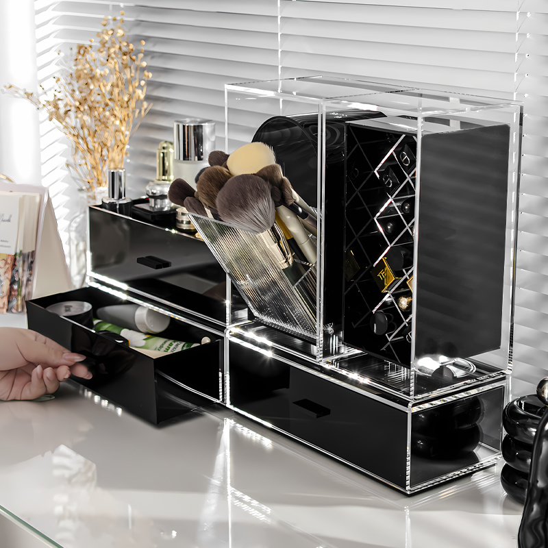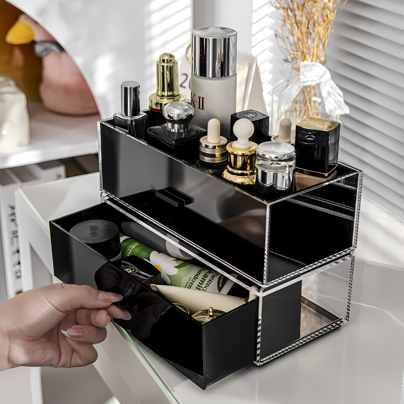 京极尼亚克力化妆品盒子抽屉收纳盒桌面梳妆台口红刷筒护肤置物架