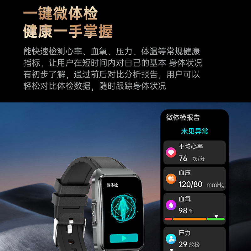 健康监测智能手表心率心电图血压血氧24小时风险评估老年人体温睡眠运动手环测量