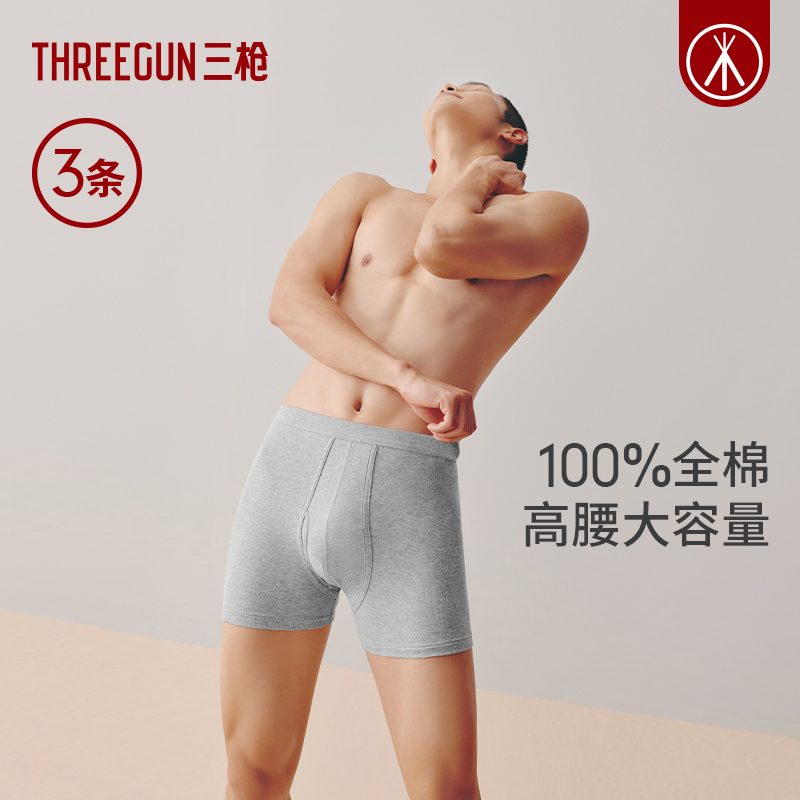 [3条]三枪内裤男纯棉透气高腰大码四角全棉防磨腿中老年加长短裤,江苏 苏州