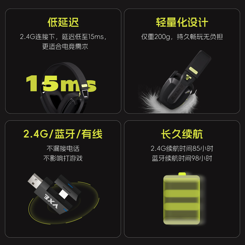 VGN海妖V1蓝牙2.4G三模轻量化头戴式带麦电脑电竞游戏耳机