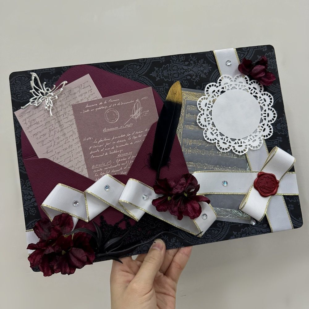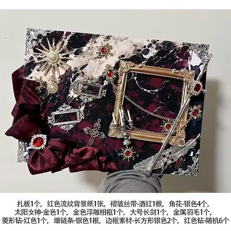痛包diy材料黑红色系全套送扎板信封扎板痛板哥特酒红色背景扎包