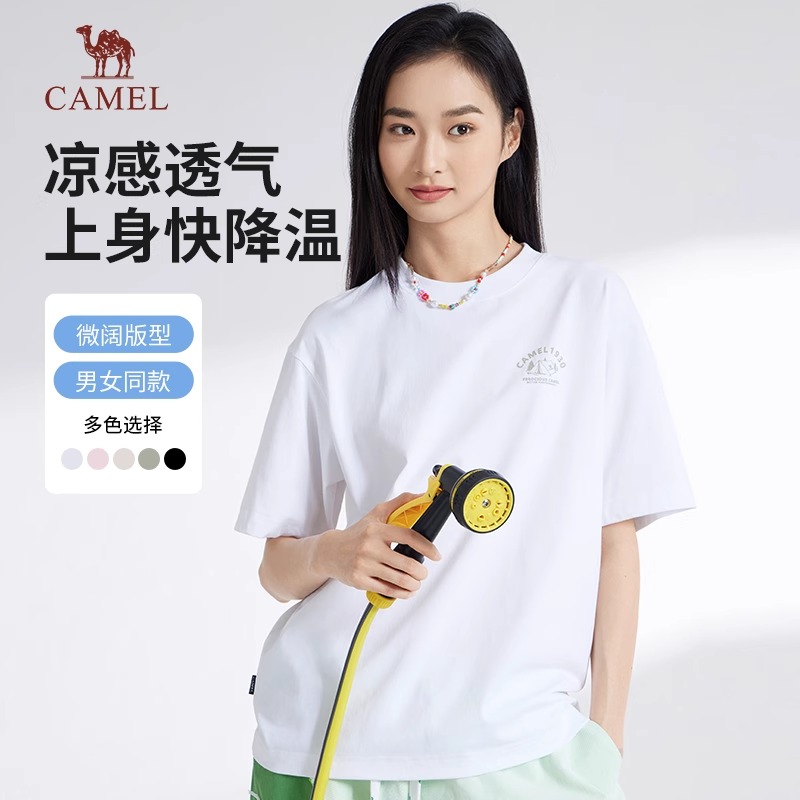骆驼男装索罗娜t恤男春夏季2025新款凉感短袖情侣休闲半袖体恤,广东 广州