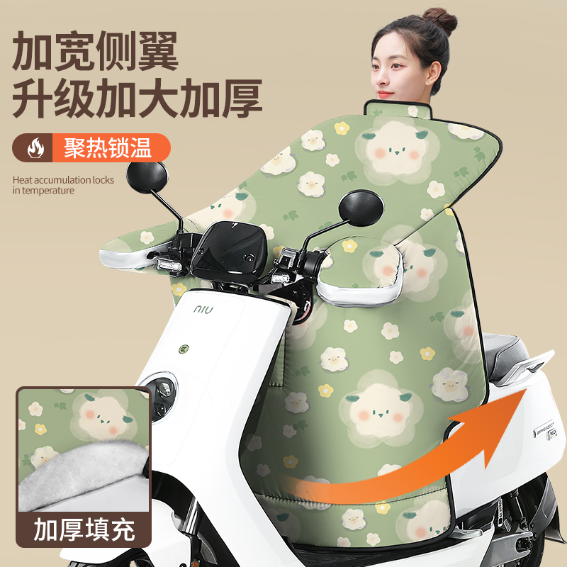 2025新款电动车挡风被冬季加绒加厚双面防水护脖电瓶车防风被防雨