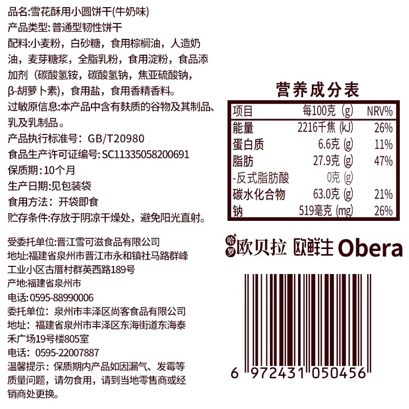 比比赞奇福小圆饼干雪花酥原材料办公室解馋网红零食小吃休闲食品,福建 泉州