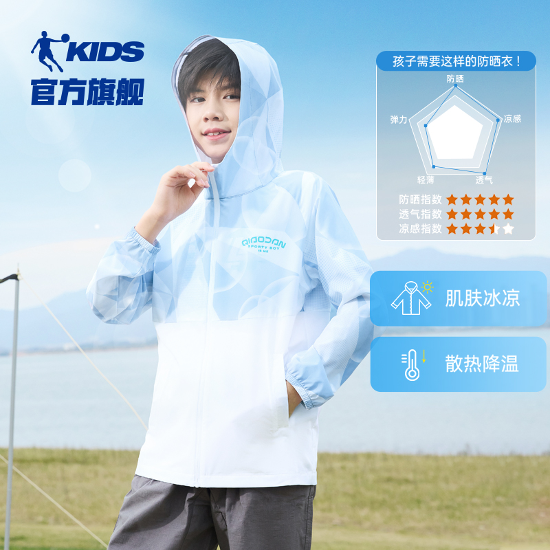 乔丹童装儿童防晒衣男童薄外套2025夏季新款中大童防紫外线皮肤衣