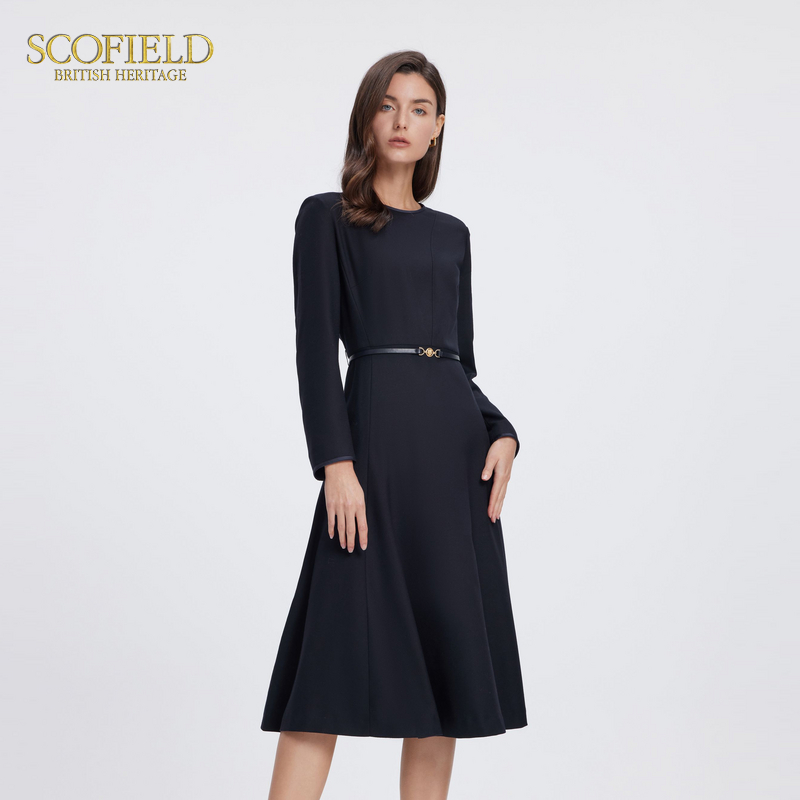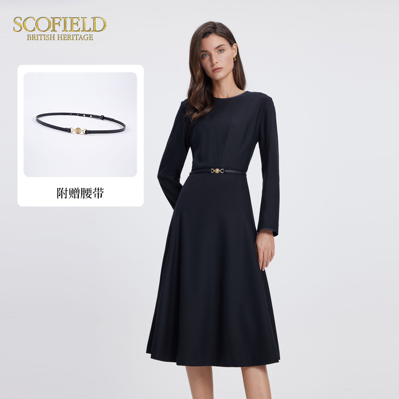 【含羊毛】Scofield女装简约领口拼接A摆收腰连衣裙2025春季新品,上海