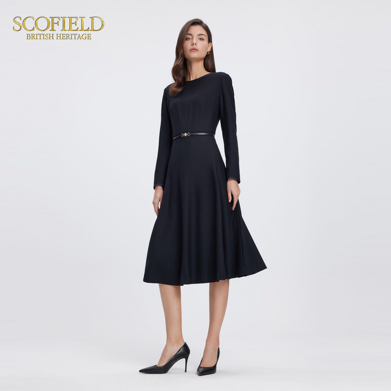 【含羊毛】Scofield女装简约领口拼接A摆收腰连衣裙2025春季新品