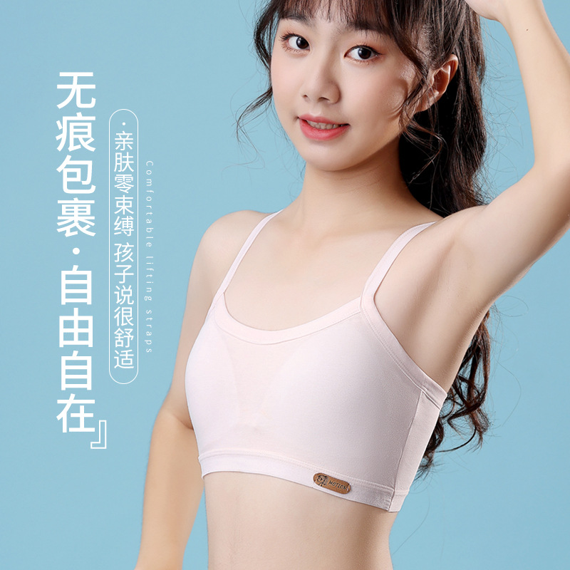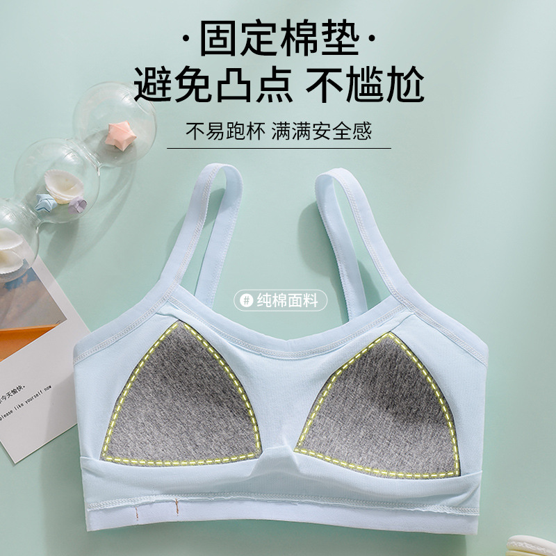 纯棉发育期内衣固定杯文胸大童背心高中生学生初中生女童薄款
