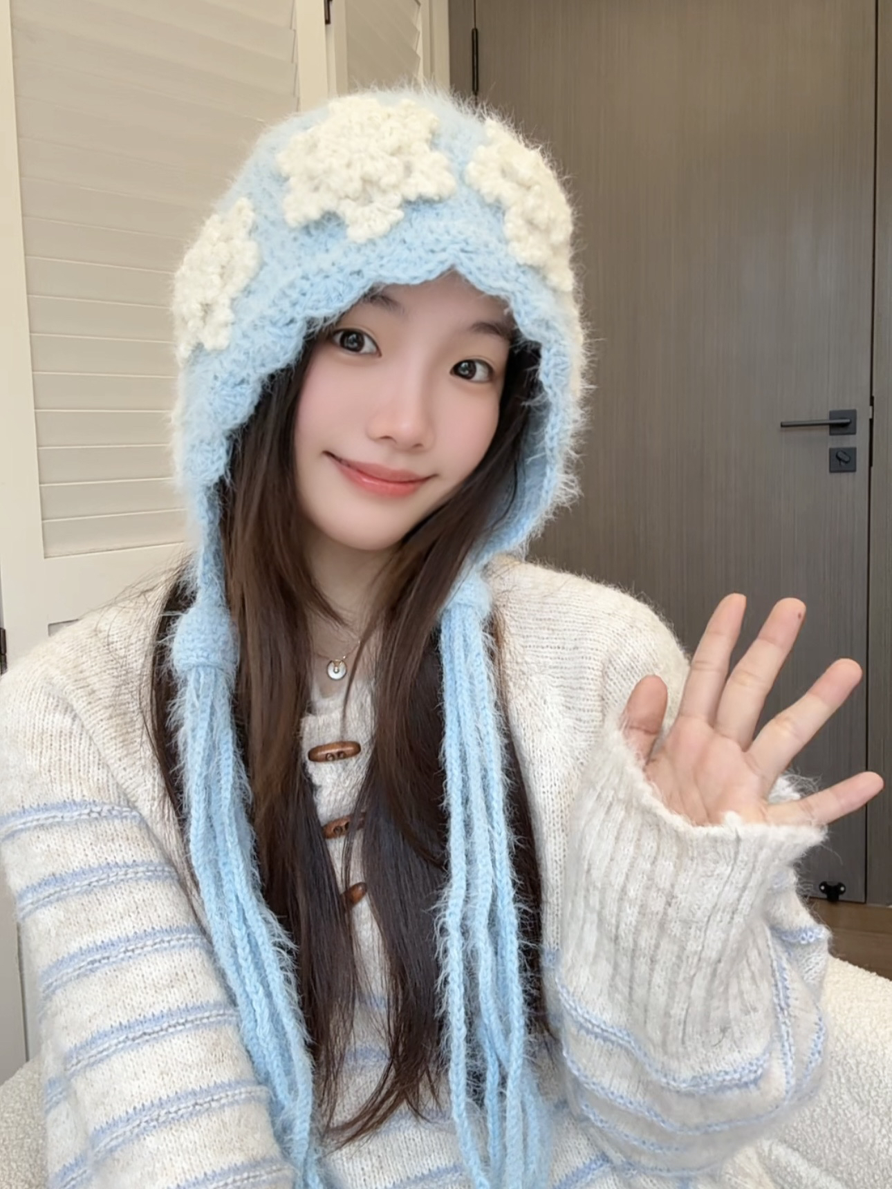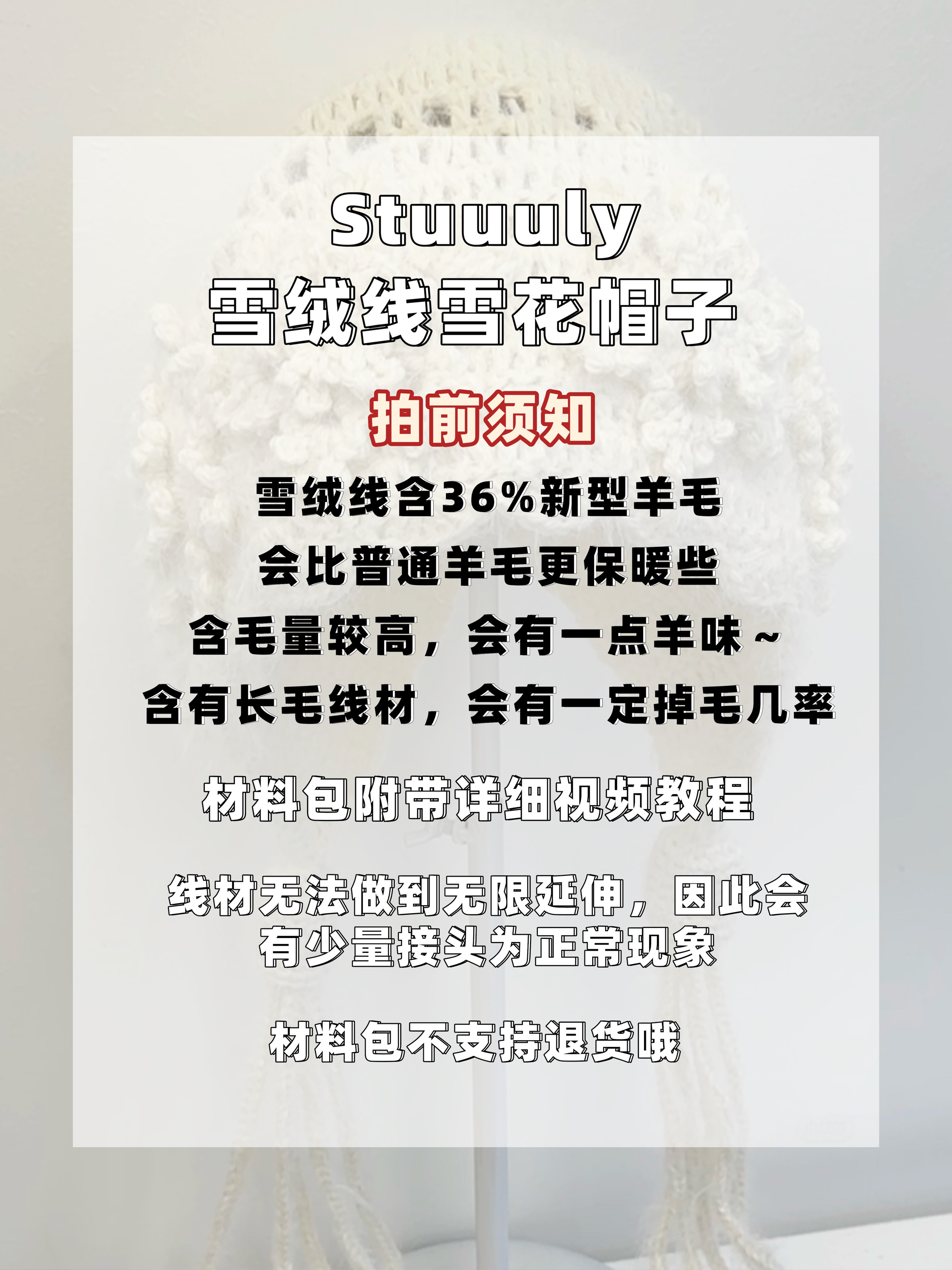 Stuuuly手工 雪花帽子雪绒线水母流苏毛绒护耳帽diy编织材料包,广东 汕头