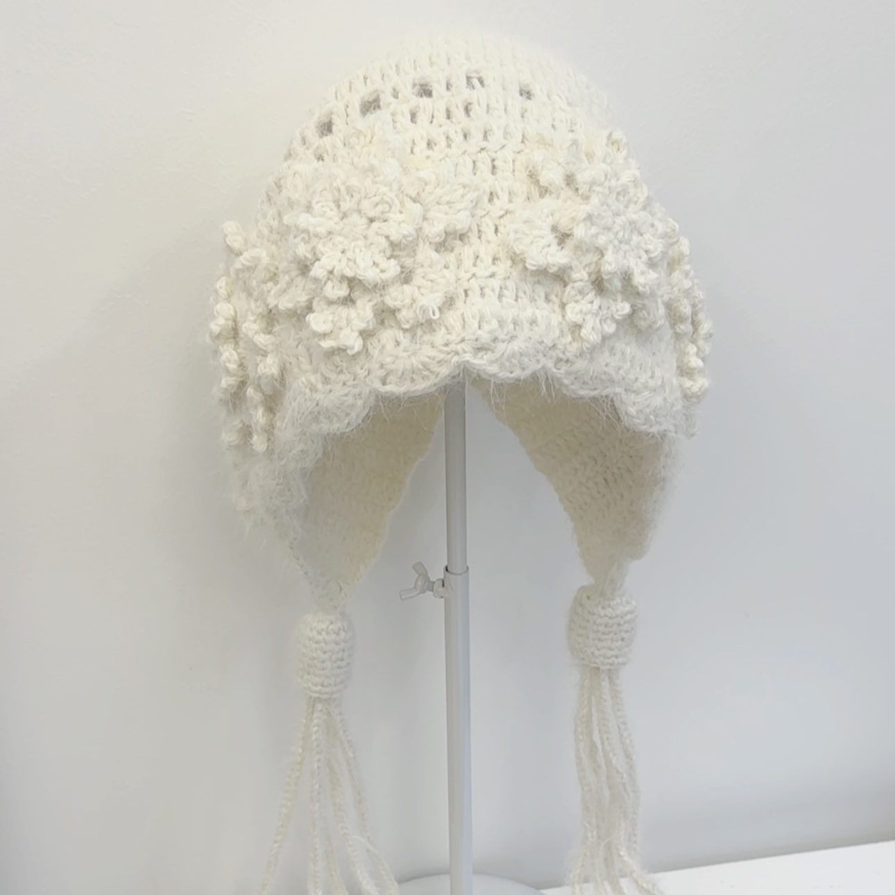 Stuuuly手工 雪花帽子雪绒线水母流苏毛绒护耳帽diy编织材料包