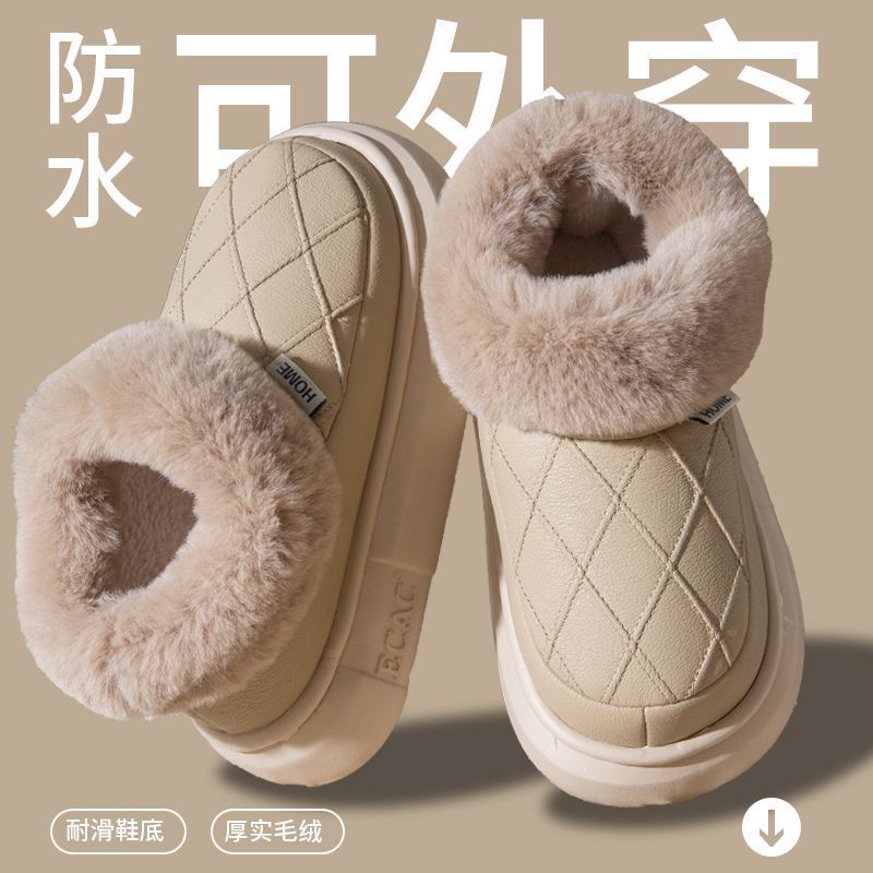 防水棉鞋女款冬季外穿保暖防寒加绒厚底情侣居家防滑包跟棉拖鞋男