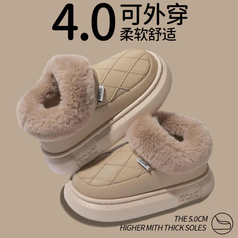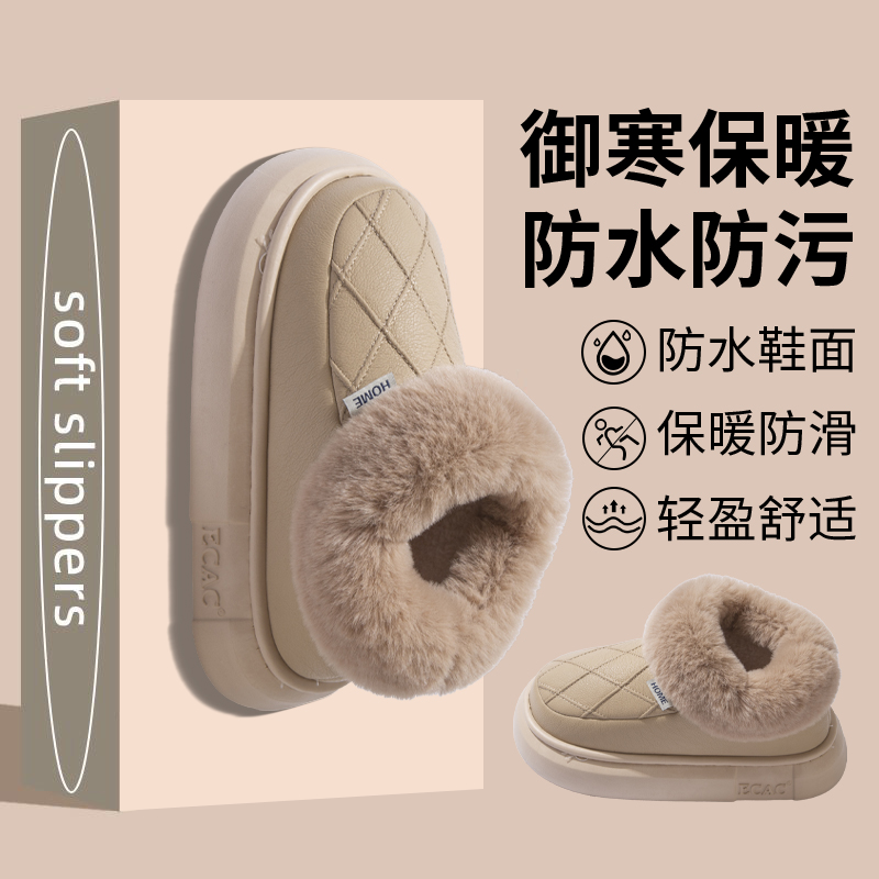防水棉鞋女款冬季外穿保暖防寒加绒厚底情侣居家防滑包跟棉拖鞋男,浙江 金华