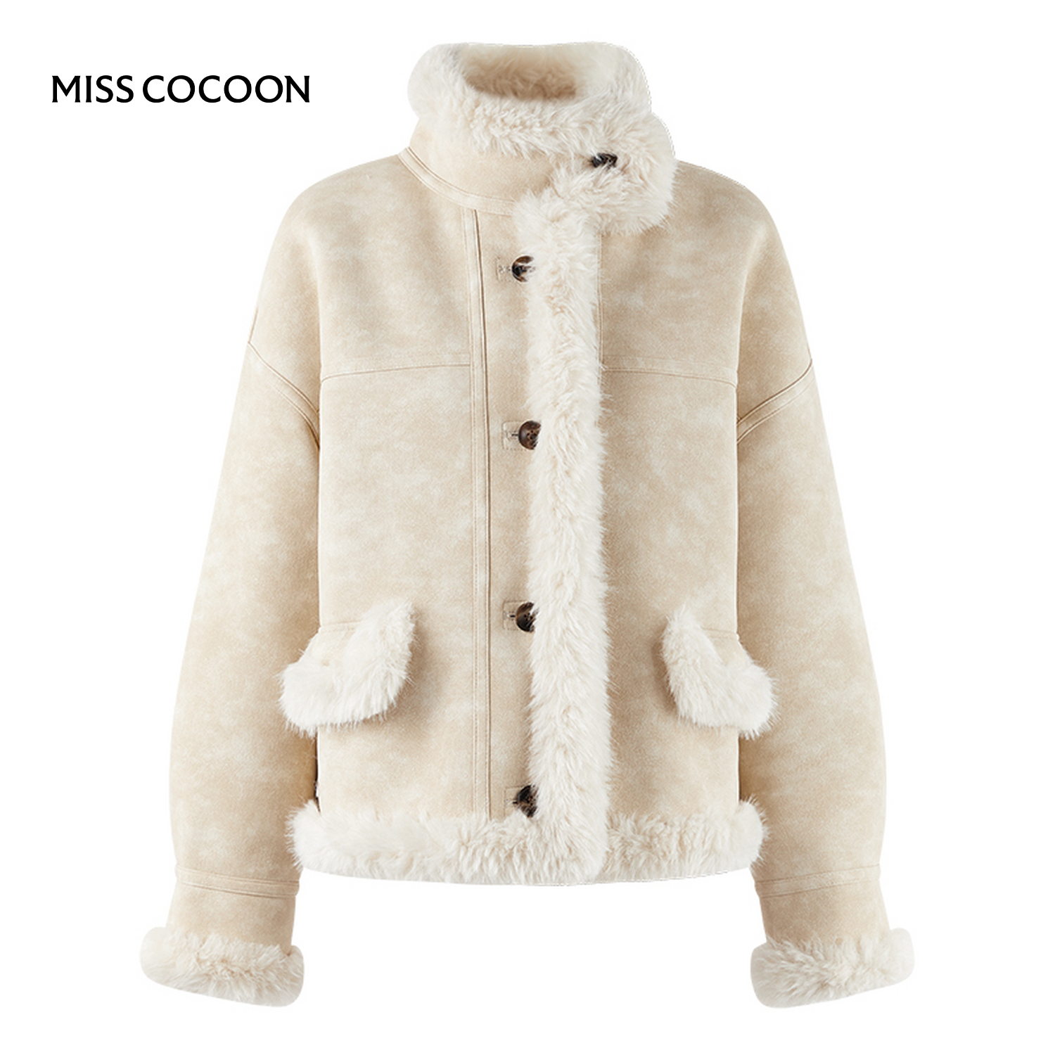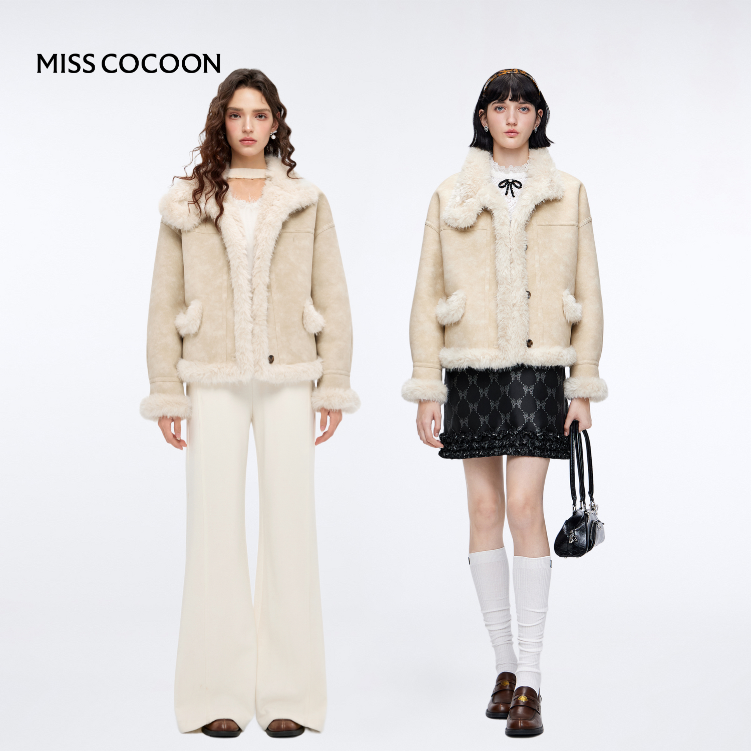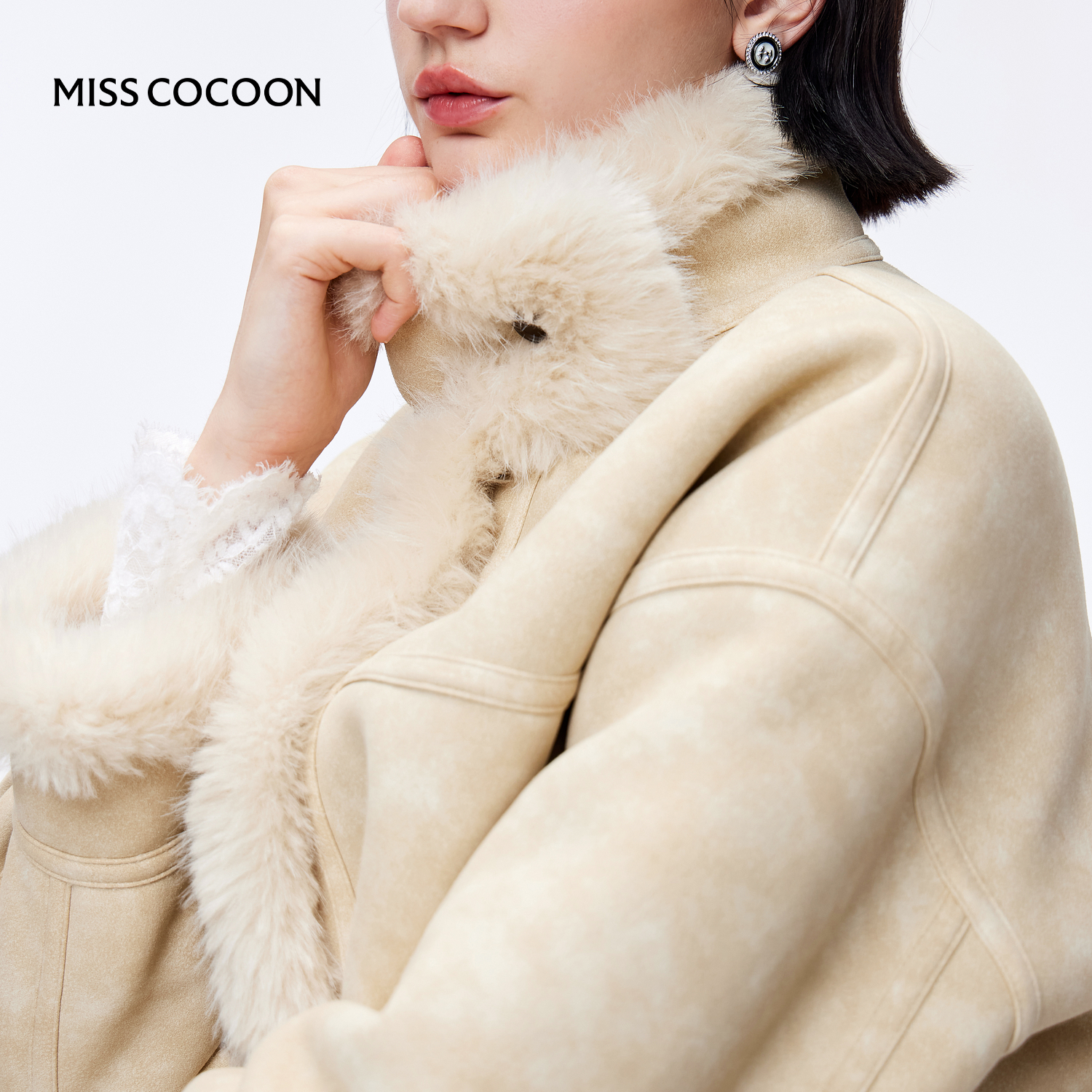 MISSCOCOON可可尼立领外套女2025秋冬新款复合麂皮皮毛一体皮草
