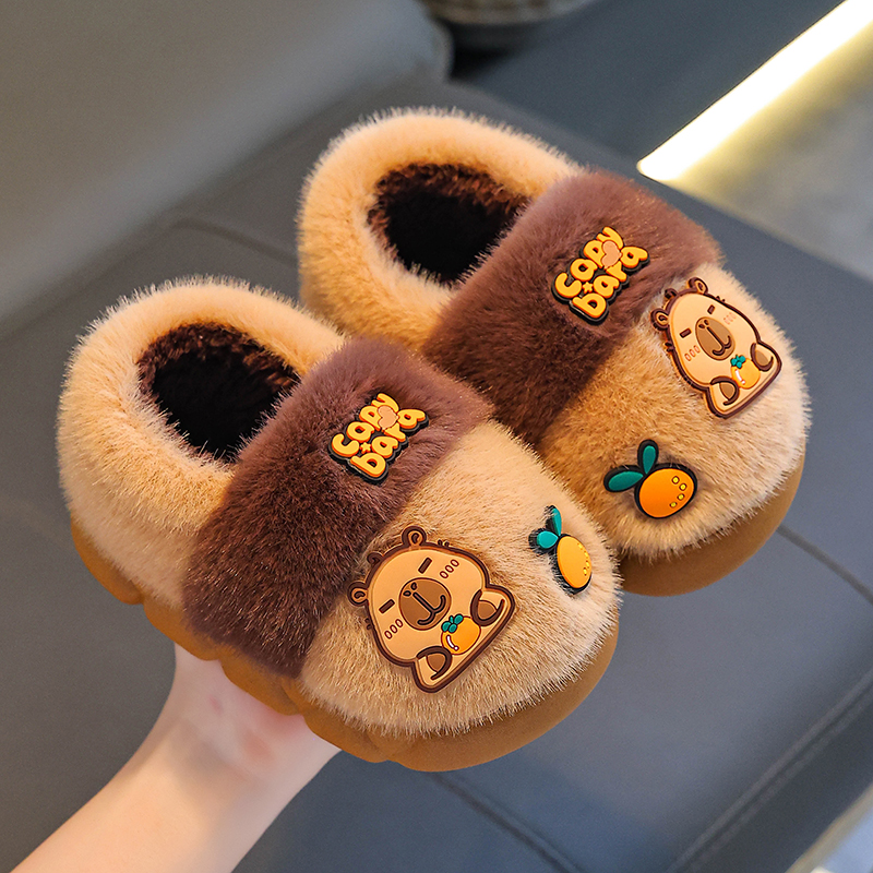卡皮巴拉儿童棉拖鞋男童冬卡通防滑室内居家亲子宝宝包跟棉鞋保暖