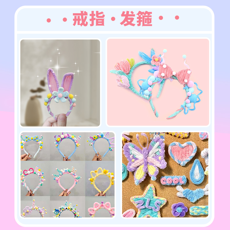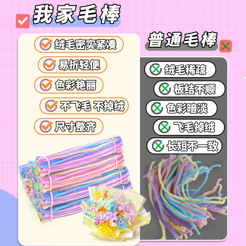 扭扭棒手工diy材料包全套特密毛根编织花束儿童扭扭棒幼儿园小学生妞妞棒加粗毛绒配件材料花灯手捧花灯笼E1