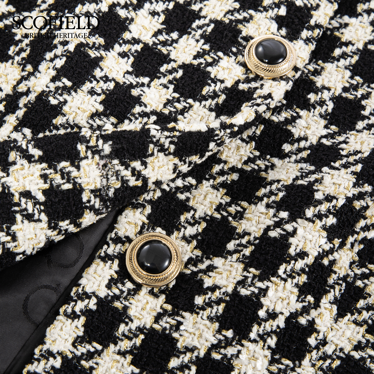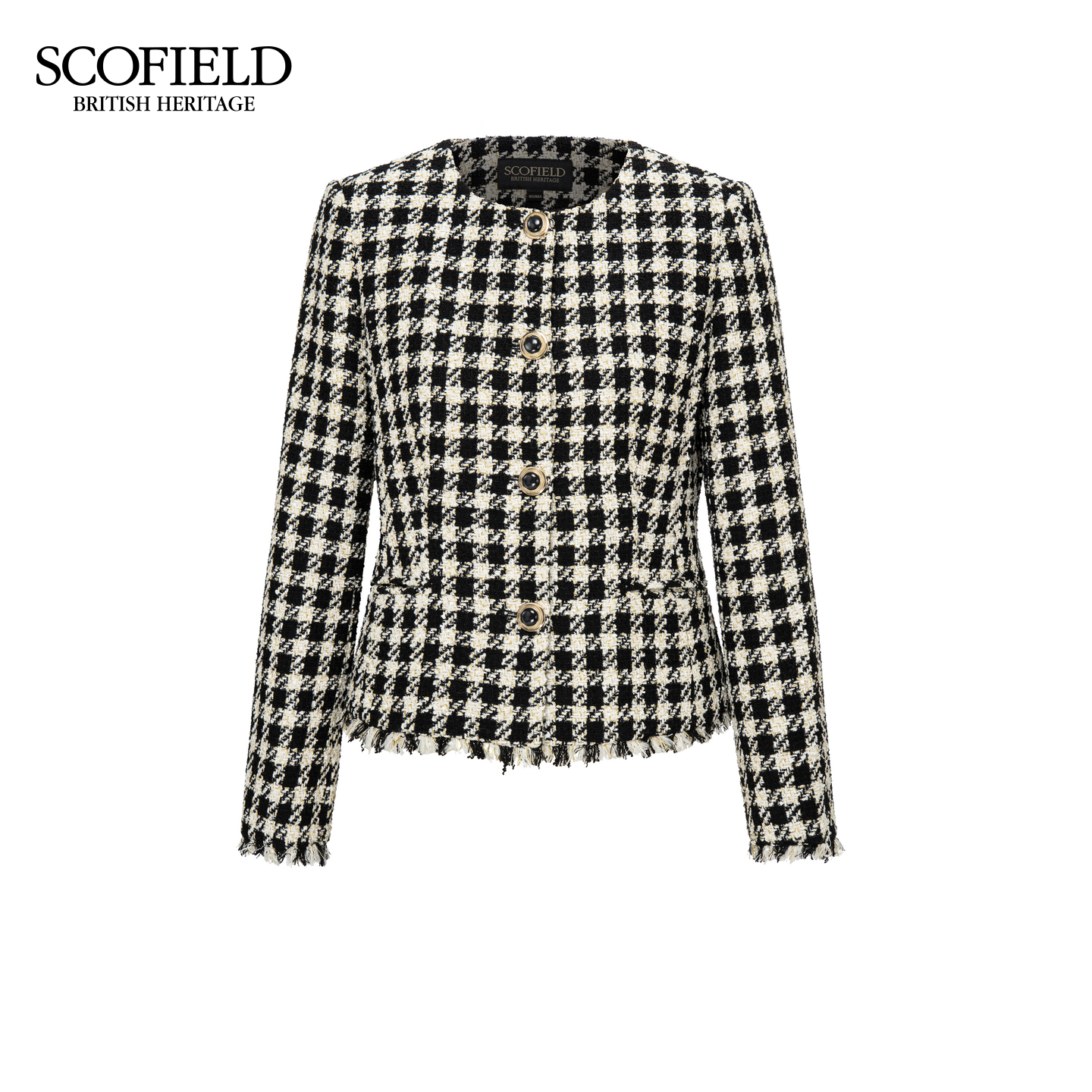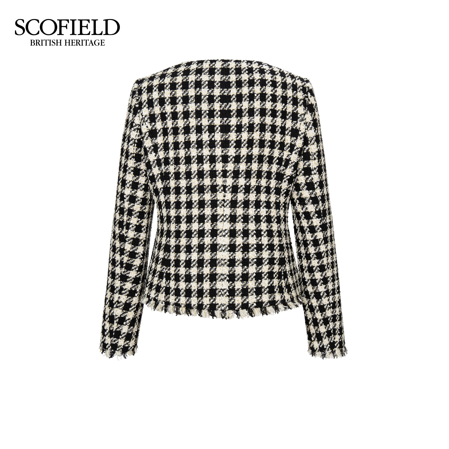 【含羊毛】Scofield女装复古千鸟格粗花呢毛边短外套2025秋冬新品,上海