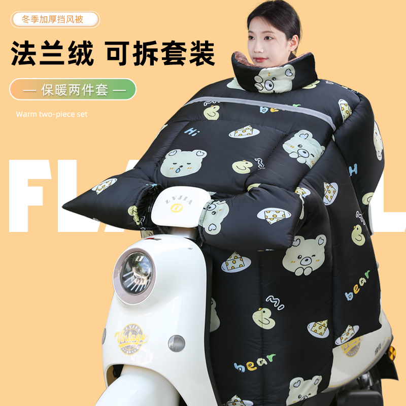 法兰绒电动车挡风被冬季加绒加厚内搭护腿超厚大号电瓶车防风保暖,安徽 亳州
