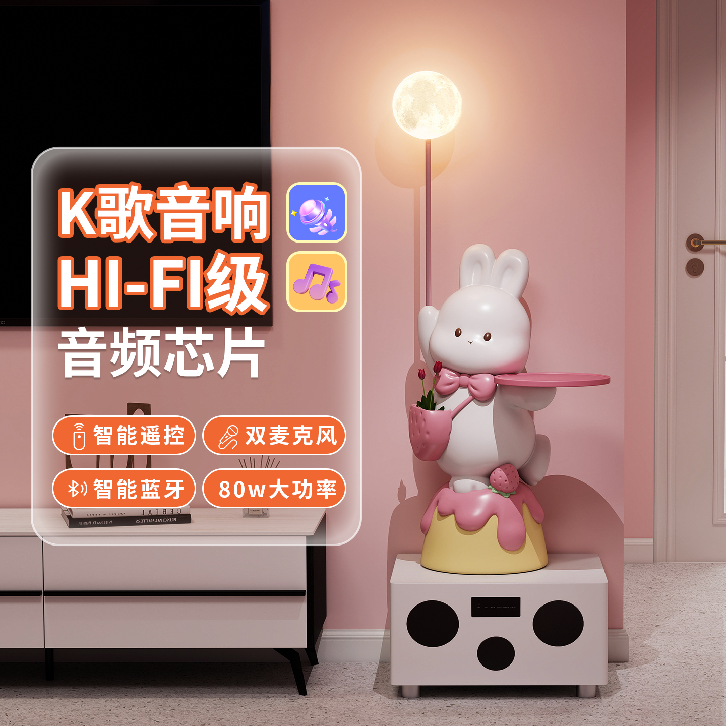 可爱兔落地灯置物架一体创意客厅沙发旁角落儿童房卧室床头柜台灯