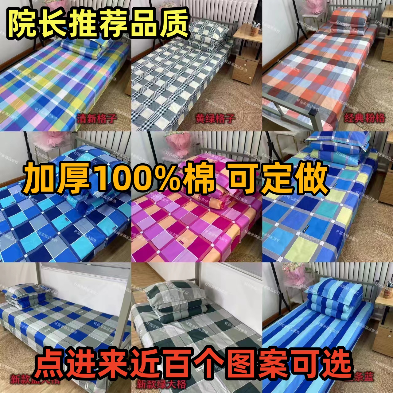 纯棉学生蓝格子被上下床三件套军训学校单人双人女生被套枕套床单