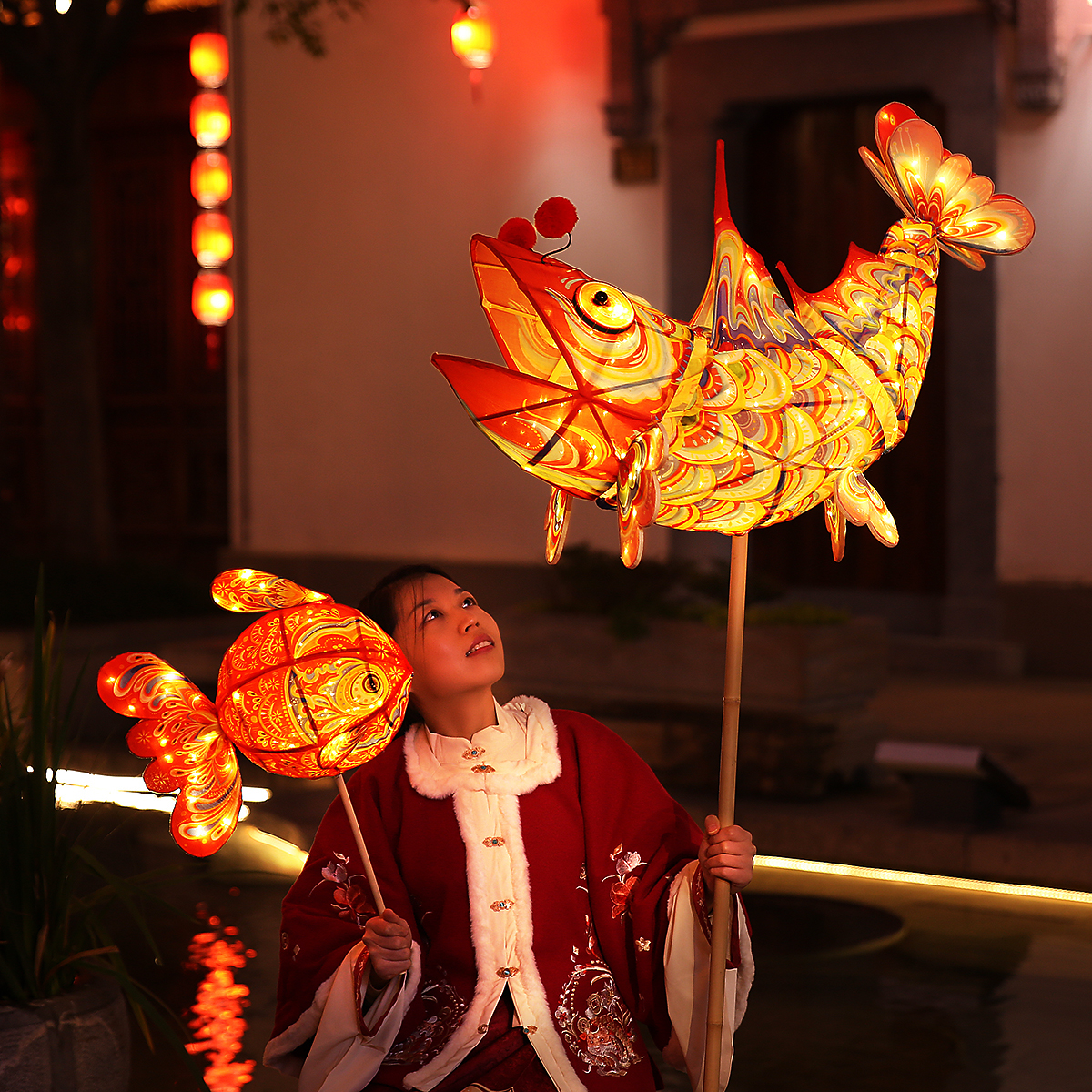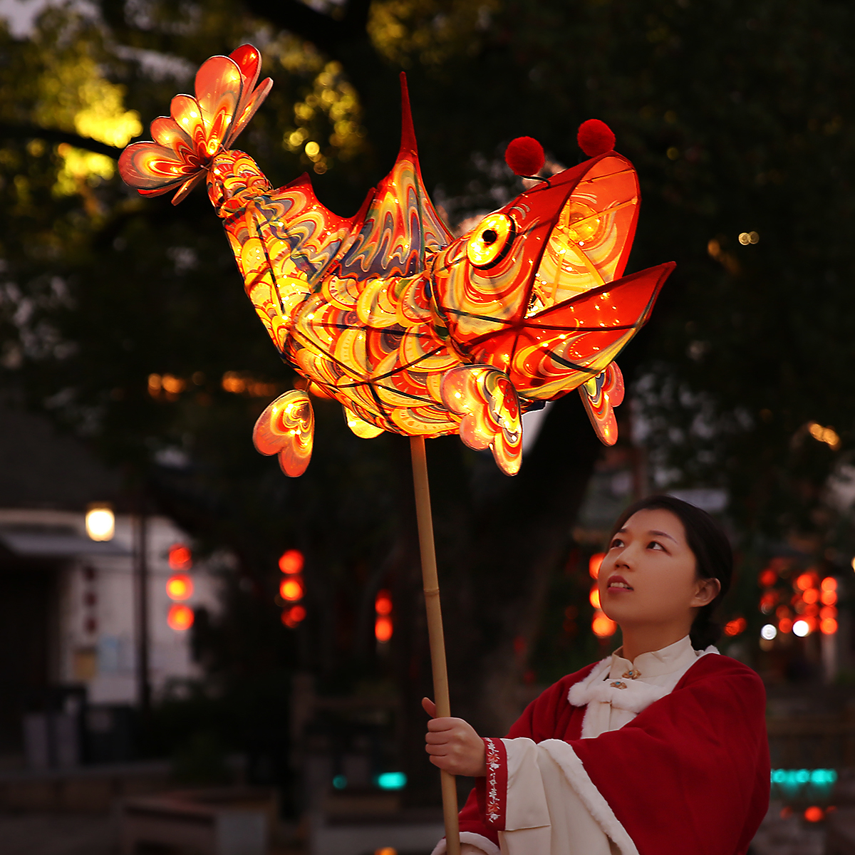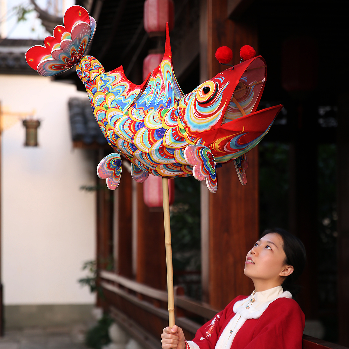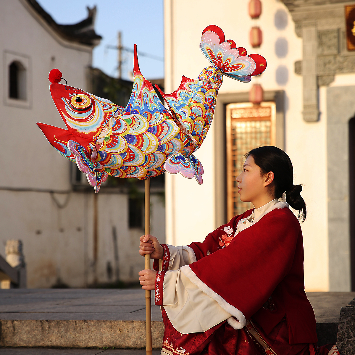 非遗竹编大鱼灯笼手工diy材料包传统古风成品花灯led新年装饰布置,浙江 金华