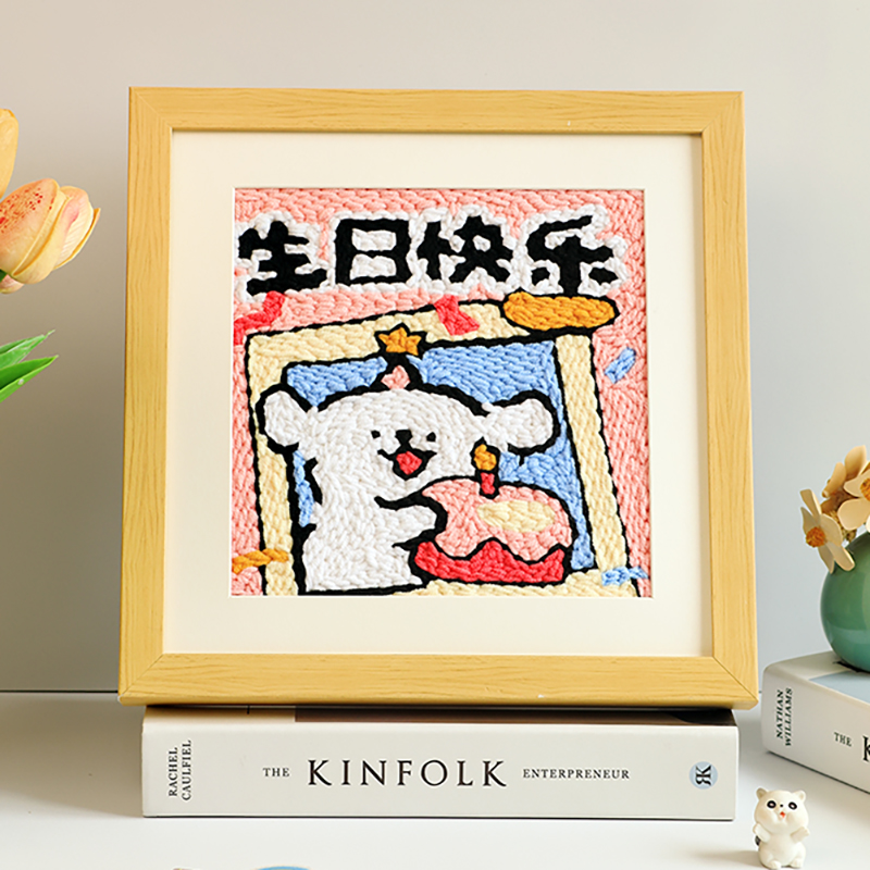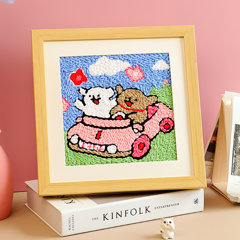 戳戳绣diy情侣可爱线条小狗材料包手工刺绣毛线画相框纪念日礼物