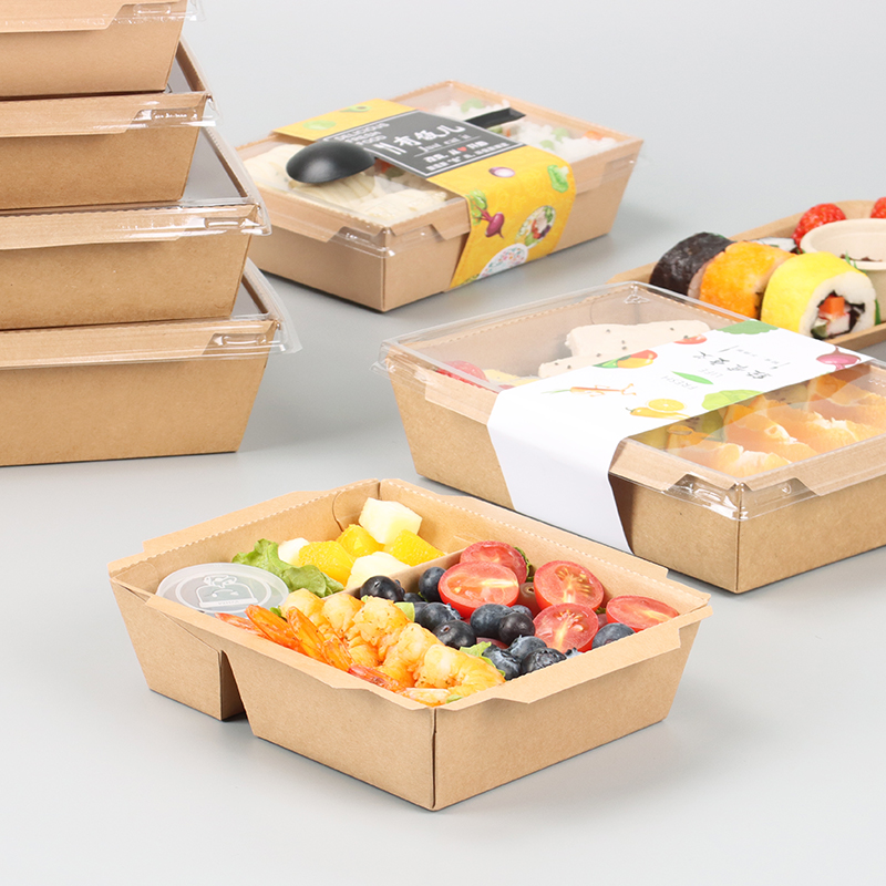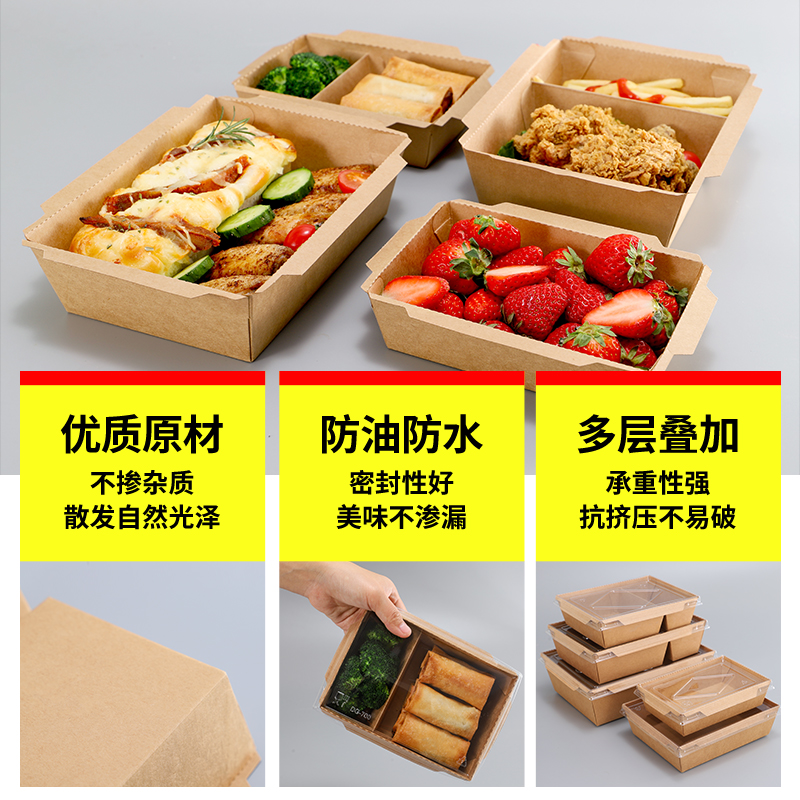 外卖牛皮纸餐盒双格一次性打包盒寿司轻食沙拉便当饭盒快餐盒环保,湖北 武汉