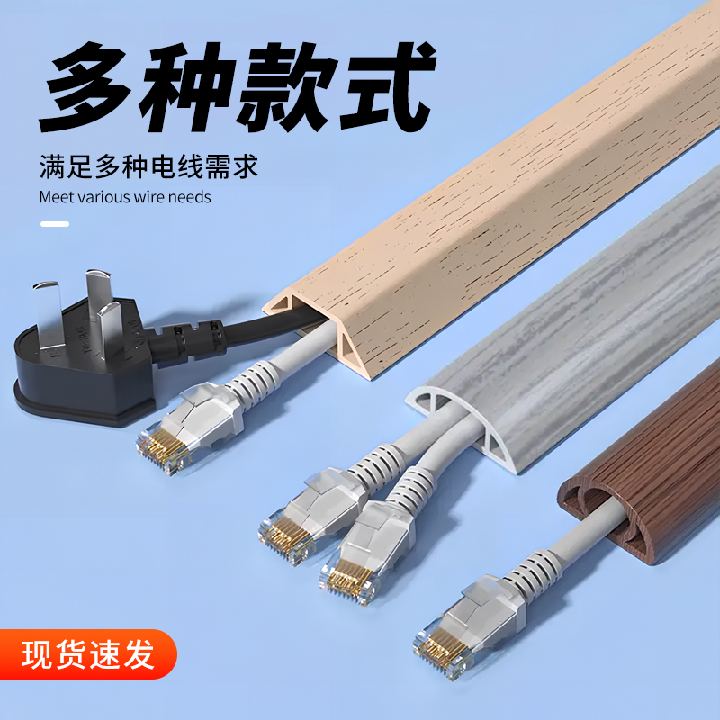 木纹线槽地面明装防踩神器隐形软理线槽遮贴地装饰明线电线走线槽