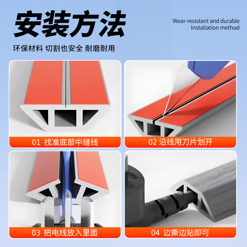 木纹线槽地面明装防踩神器隐形软理线槽遮贴地装饰明线电线走线槽,河北 邢台
