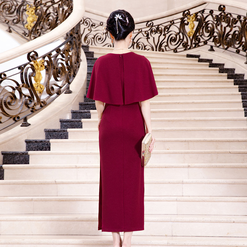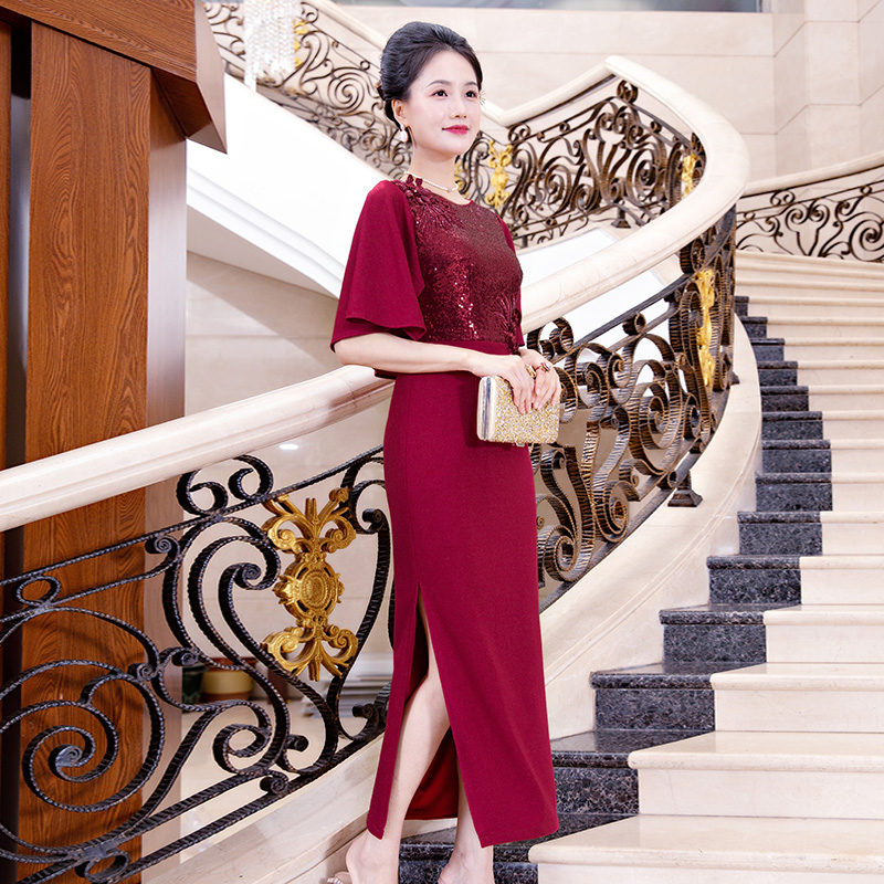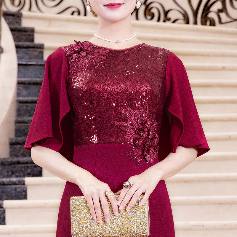 多丽琦轻奢礼服2025新款红色喜妈妈婚宴装活动晚装礼服减龄连衣裙,广东 东莞