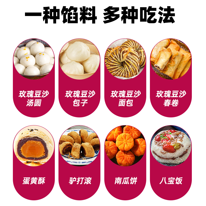 百钻玫瑰红豆馅500g做月饼汤圆面包包子红豆沙馅料家用烘焙材料