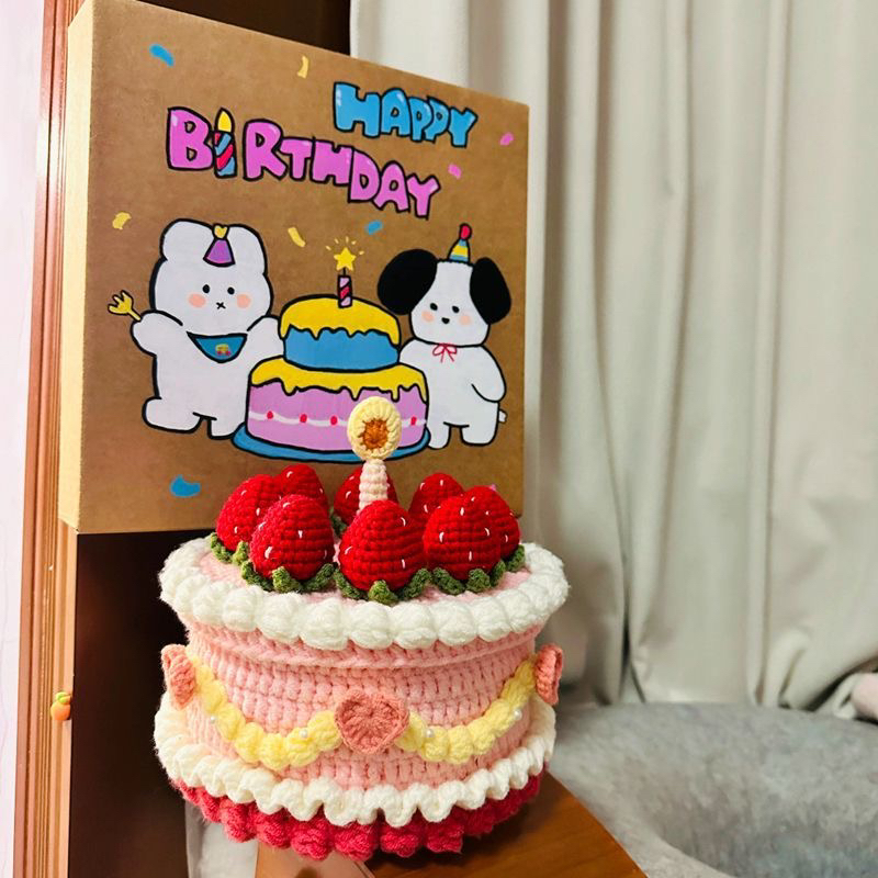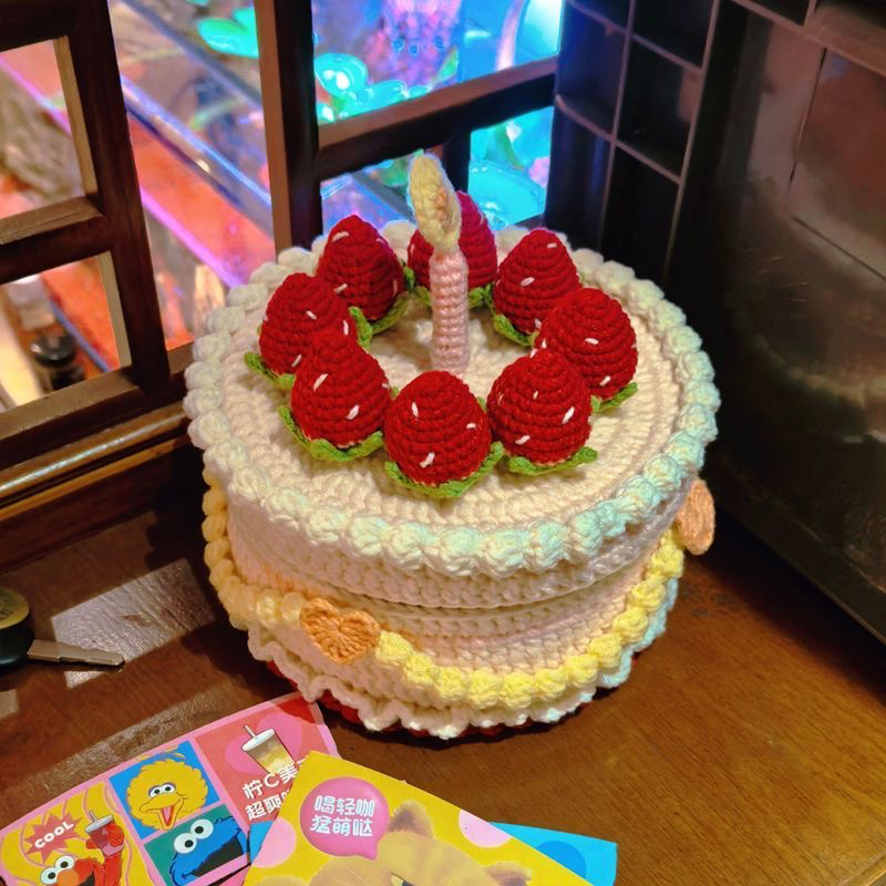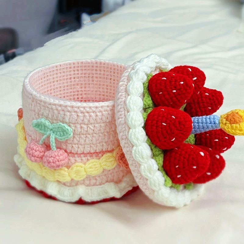 手工DIY钩织材料包草莓奶油蛋糕收纳盒送朋友生日礼物纪念自制