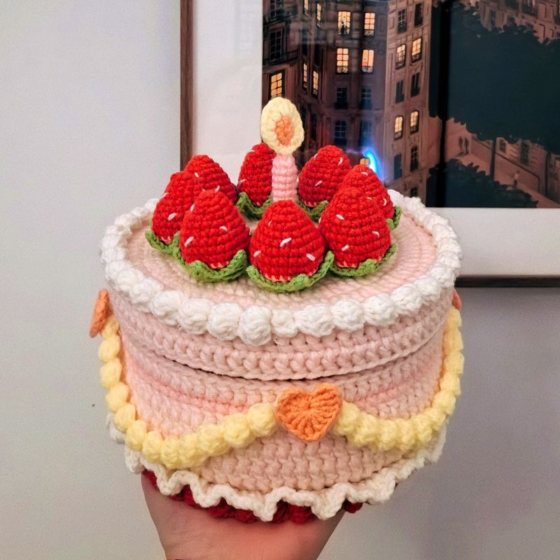 手工DIY钩织材料包草莓奶油蛋糕收纳盒送朋友生日礼物纪念自制,北京